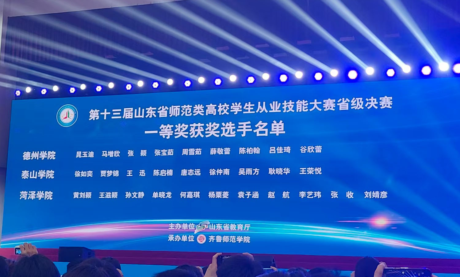 近日,在山东省教育厅主办的第十三届山东省师范类高校学生从业技能大赛中,best365手机版官方网站选手表现优异,斩获高中物理组一等奖1项、初中物理组三等奖1项,同时1位教师荣获“优秀指导教师”称号,实现了学院在该项赛事中的历史性突破。