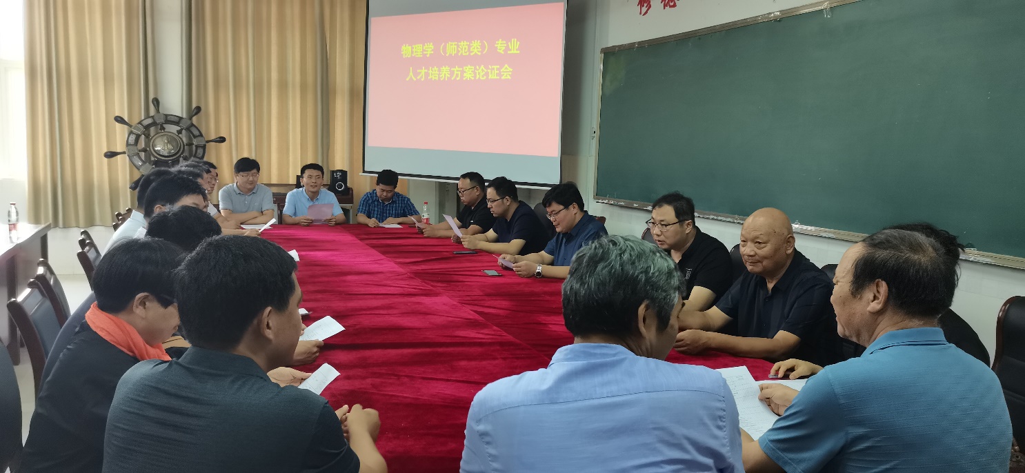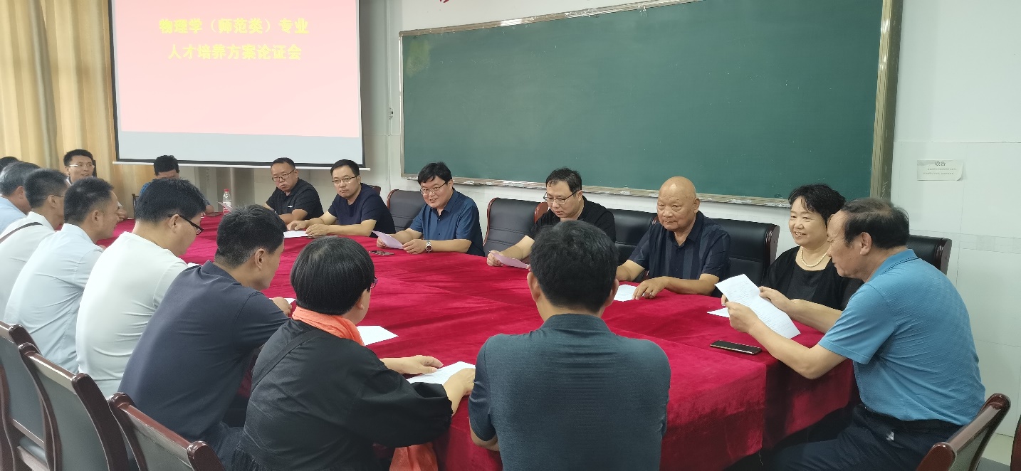 2021年7月24日,为全面推进物理学师范专业认证工作深入开展,深化教育教学改革,提高人才培养质量,根据《best365手机版官方网站师范专业认证工作方案》,物理与电子工程院在综合实验楼W207召开了2021版物理学专业人才培养方案修订论证会。特邀请到了往届物理学专业优秀毕业生、优秀校友曲阜师范大学刘广强教授、中国科院合肥物质研究院王永亮教授、淮阴工学院王延宗教授、曹县一中刘仰杰高级教师、东明一中李运霞高级教师、巨野实验中学刘海生高级教师、山东明灿光电科技有限公司周开峰总经理及退休教师代表;best365手机版官方网站院长徐兴磊、副院长蒋继建、教科办主任蔡鲁刚、物理系系主任物理学专业负责人张运海和学院部分骨干教师代表参加了本次论证会。