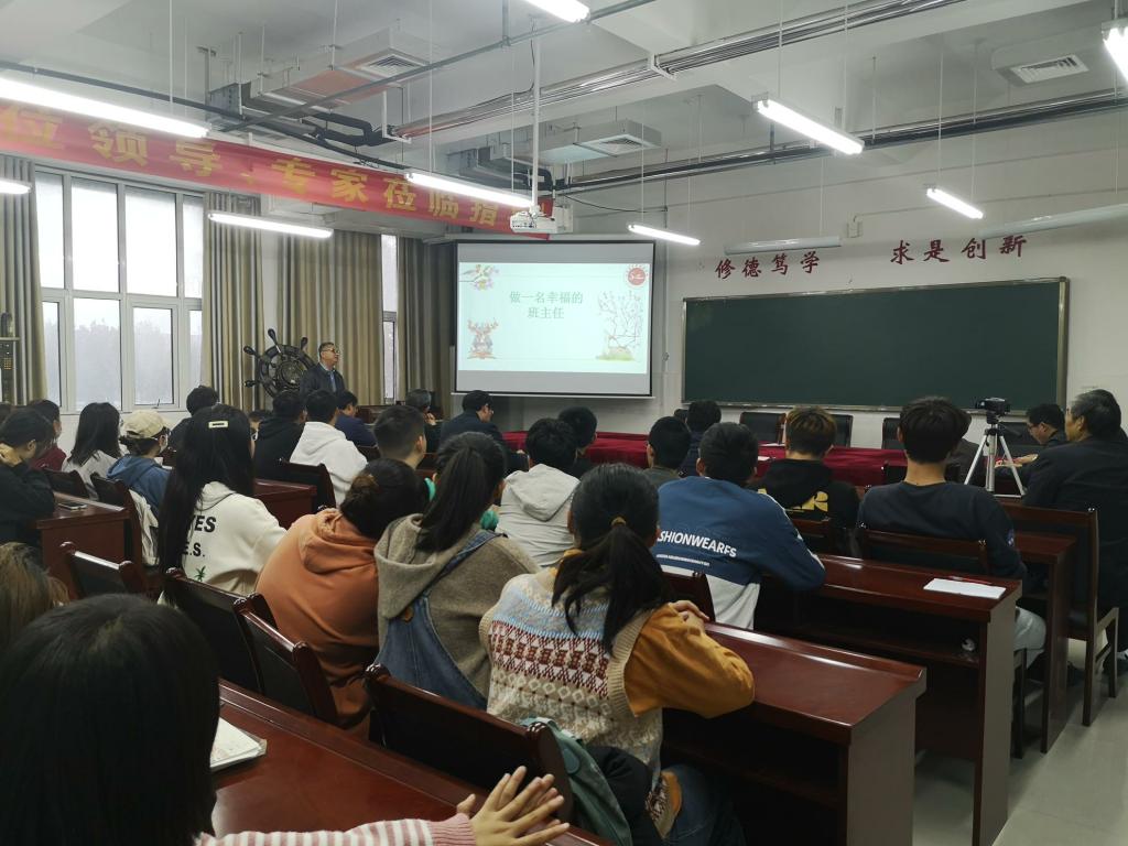 2021年11月5日,应学院邀请,菏泽一中思源学校教科处主任、模范教师、功勋教师、师德标兵、教学能手、教坛精英姜广峰教授,给物理学师范专业学生作《做一名幸福的班主任》专题报告。这是学院为进一步强化大中衔接,促进师范生学会教学、学会育人,不断树立从教志愿,养成师德师能、促进全面发展的有力举措。