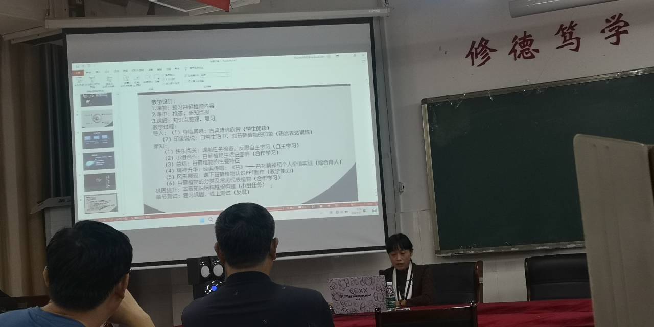史冬燕老师首先用PPT的形式带领大家对牡丹学院生物科学专业通过师范认证的过程进行了回顾,指出了在教学过程中大家应该注意的问题。紧接着,以植物学课程中的《苔藓植物》为实例,给大家展示了教学的整个过程。教学过程从《鹿柴》和《破阵子 春景》两首古诗词鉴赏引入,带领大家进入一种身临其境的感觉。教学方法采用了多媒体展示、野外识别和传统教学方法相结合的方式进行,带给了大家耳目一新的感觉。