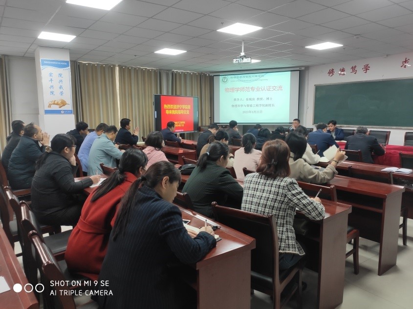 4月21日上午,应best365手机版官方网站邀请,济宁学院物理科学与智能工程学院副院长、硕士生导师岳现房教授、博士在综合实验楼W207会议室为全院教师做了题为《物理学师范专业认证交流》的专题报告。best365手机版官方网站院长徐兴磊教授、副院长张运海教授及全院教师共计40余人聆听报告,报告由副院长张运海教授主持。