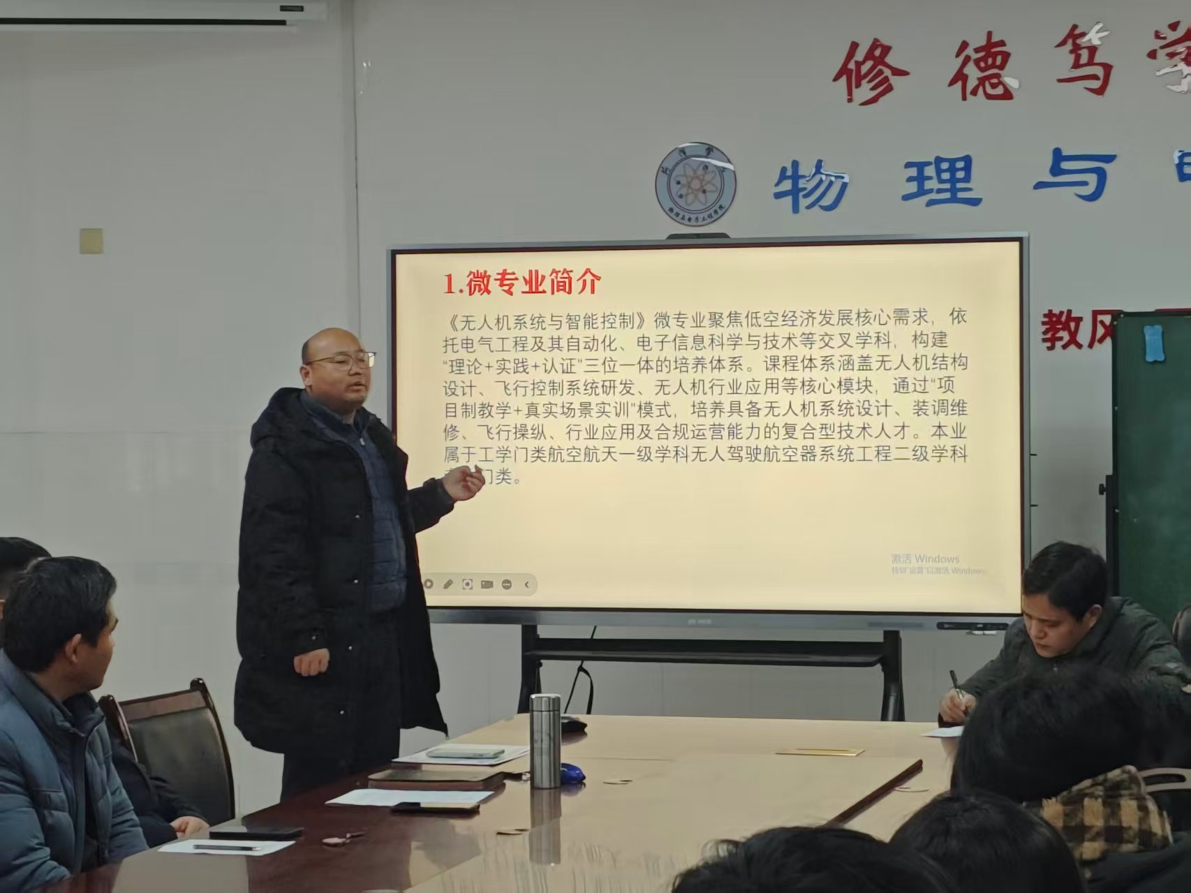 宣讲会开始,微电子科学与工程、电气工程与智能控制、无人机系统与智能控制三个微专业的负责人刘纯宝、孔令杰、王康老师分别从产业需求、人才培养、师资力量、实践平台及发展前景等方面展开详细介绍,全方位展现各微专业的特色优势、修读政策、建设背景等,深刻阐释了微专业建设在推进教学改革、完善人才培养体系、提高学生综合素质和促进高质量就业中的重要意义,并对报名的具体流程做了详细说明。