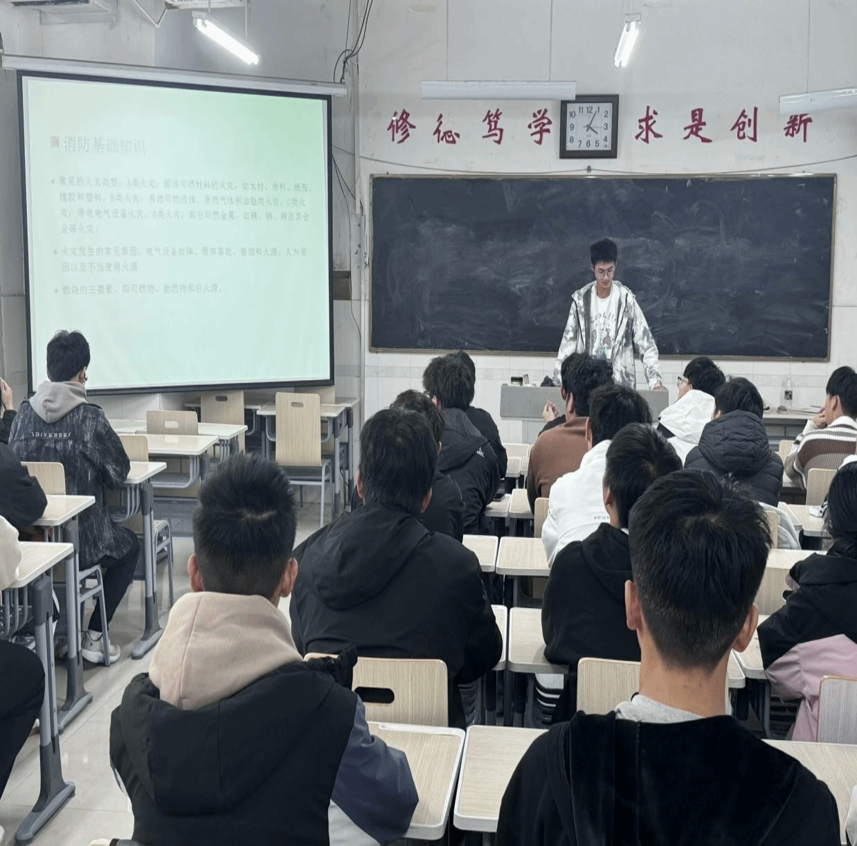 活动开始,同学们齐聚在教室里,全神贯注地观看消防安全教育视频。讲解员通过生动的画面、真实的案例以及详细的讲解,展示火灾的破坏力,使同学们深刻认识到消防安全的重要性。接下来是消防疏散演练环节,随着警报声骤然响起,同学们迅速反应,用湿毛巾捂住口鼻,弯腰低姿,有条不紊地沿着指定的逃生路线撤离,整个演练过程秩序井然。活动最后是由消防专业人员向师生讲解灭火器的种类、适用范围以及操作方法,同学们纷纷围聚在一旁,全神贯注地聆听,不少同学在消防专业人员的指导下,体验如何正确使用灭火器,切实掌握了灭火器的使用技巧。