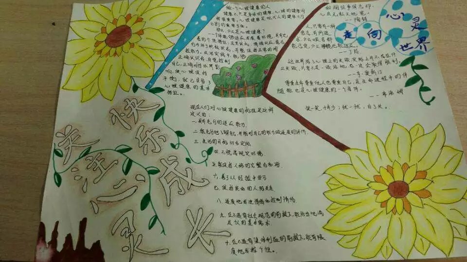 为帮助同学们树立积极健康的人生观、培养健康的生活理念,丰富同学们的校园生活,促进同学之间的沟通与交流,提高大学生的心理健康意识,了解心理健康的关爱自我、了解自我、接纳自我,关注自己的心理健康和心灵成长进而爱别人,爱社会,物理与电子工程系特举办以“心灵美,健康美”为主题的手抄报评比活动。