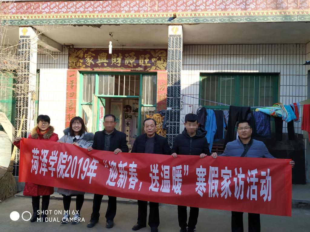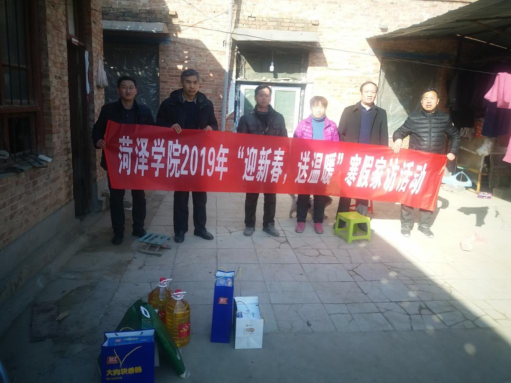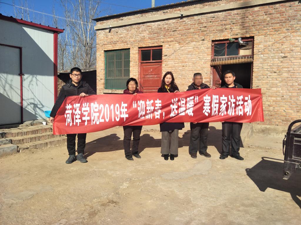 为进一步促进学生发展,构建良好家校合作机制,完善资助育人体系,落实高校立德树人的根本任务,按照《best365手机版官方网站2019年寒假家访活动实施方案》的具体要求,best365手机版官方网站精心组织并扎实开展了寒假家访活动。1月22日,学院领导班子及全体辅导员、班主任代表组成了3个家访团队,分别赶赴单县、曹县、巨野县、东明县等地进行了家访活动。