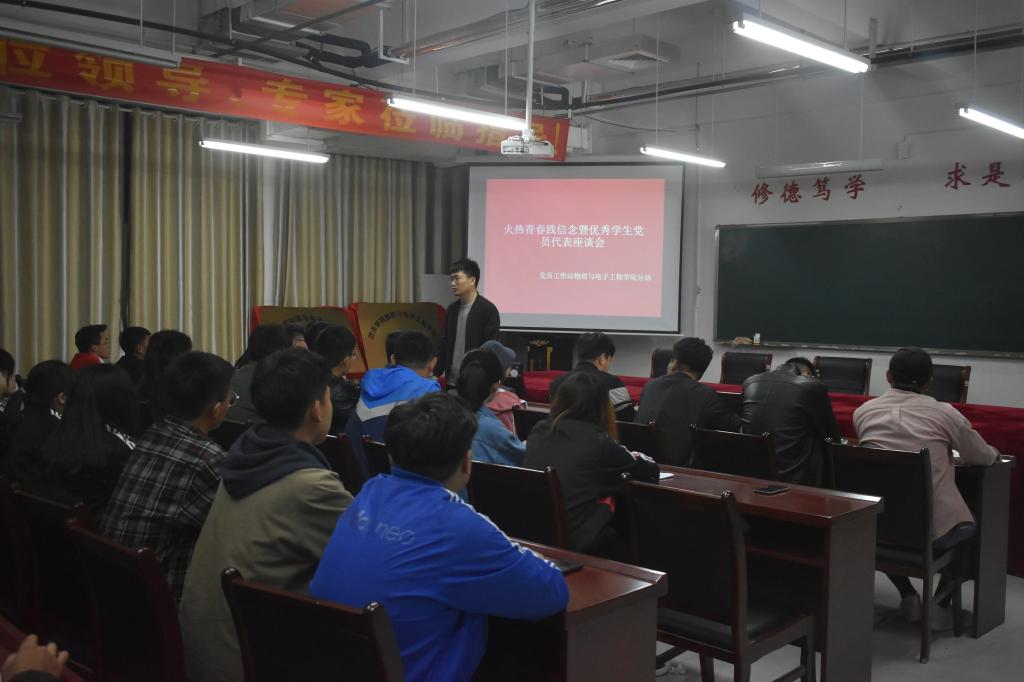 (编辑人员:李敏)为庆祝“五四运动”100周年,引导同学们学习身边优秀共产党员的先进事迹,激发热情和斗志,发扬光荣传统。丰富同学们的校园文化生活,在活动中向同学们渗透五四爱国精神,2019年5月8日晚七点三十分,党员工作站best365手机版官方网站分站在W楼207教室举办了“火热青春践信念暨优秀学生党员代表座谈会”,best365手机版官方网站优秀学生党员、学生会各部代表参加会议。