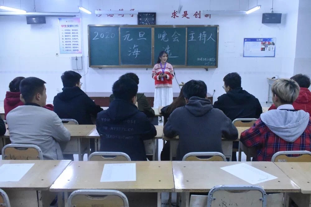 19:10分,海选活动正式开始,参与竞选的同学信心十足,认真准备三分钟的主持稿,按照排列顺序依次进入教室接受评审团的考验,参与评审的17、18级的同学更是严格严肃,用敏锐的反应捕捉参与竞选者的不足,并公正指出。活动持续一小时零五分,现场氛围庄重而热烈。