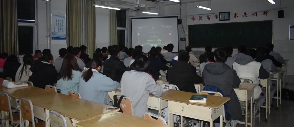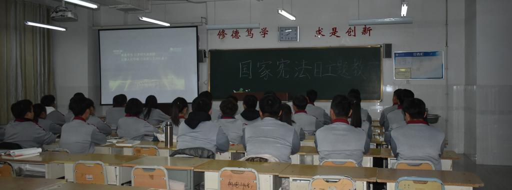 本次活动由各班班长带领同学们观看“2019年国家十佳法治人物颁奖”视频,学习宪法知识,了解我国法制体系以及我国法制现状,让同学们知法、懂法、守法。视频结束后,由学生代表发言,讲述自己对宪法的认识,以及在以后的学习生活中如何做到学法、守法、用法、爱法,引导同学们树立以守法为荣,以违法为耻的观念,同学们积极响应,气氛热烈而庄严。