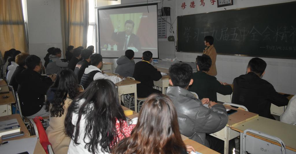 此次会议以看十九届五中全会会议视频为主。党的十九大是党领导人民决胜全面建成小康社会、开启全面建设社会主义现代化国家新征程的一次大会,具有开创性、划时代的意义。在学习党的十九届五中全会精神中,我们充分体会到中国特色社会主义制度展现出的显著优越性和强大的生命力,也深刻认识到作为当代青年的责任。任雪莲表示,学习十九大精神,不仅要内化于心,还要外化于行,不忘初心、牢记使命。