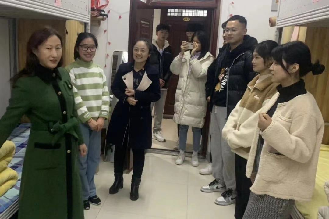 走访宿舍过程中,刘燕书记对宿舍暖气情况进行了检查,亲切询问了同学们关于宿舍内设施安全、环境舒适等方面的问题。同时,鼓励同学们在稳抓学习的基础上,积极培养自己的兴趣爱好,丰富自己的大学生活。老师们建议大家多吃水果、蔬菜,强调身体健康才是做好一切的资本。尽管天气寒冷,宿舍楼内仍暖意融融,欢声笑语不断。