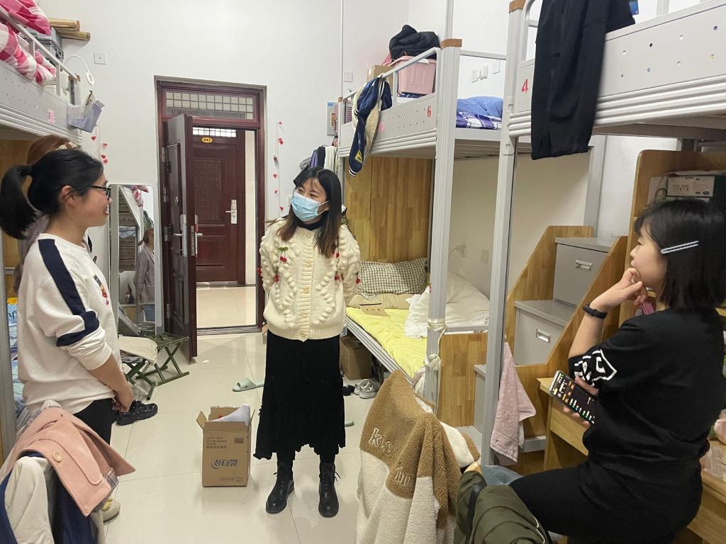 走访宿舍过程中,辅导员贾晓蒙重点强调了疫情期间封校不外出的工作要求,并叮嘱同学们要严格按照学生防疫工作通知的指示,积极配合学校防疫工作,勤开窗通风,及时关注学校防疫工作动态。特殊时期,要佩戴好口罩,勤洗手,做好自身体温监测和晨、午、晚体温上报工作。面对老师的温情慰问,同学们纷纷表示,将会以抖擞的精神、高昂的状态投入到这段特殊时期的学习生活中。