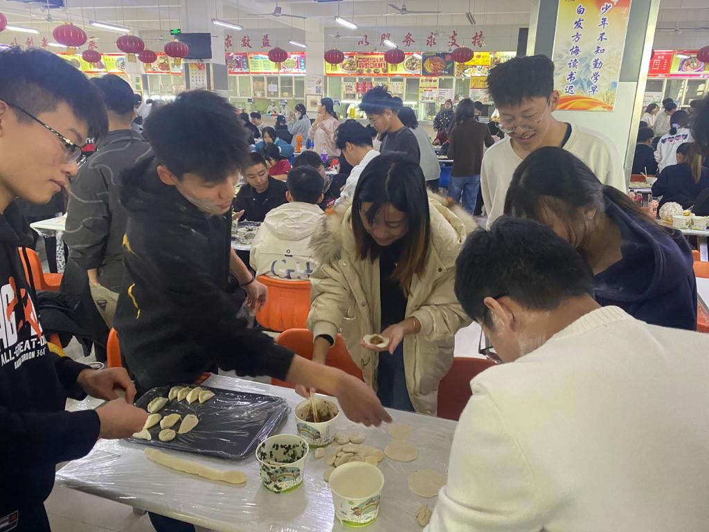 活动现场,同学们分工有序、配合默契,围在一起擀皮、拌肉馅儿。大家一边聊着天一边包着饺子,气氛十分融洽,每个人脸上都洋溢着喜悦的笑容。在一片欢声笑语中,一张张面皮、一团团香馅在大家的手中包成了美味的饺子。一个个热腾腾的饺子驱散了冬日的严寒,同学们品尝着自己亲手包的饺子,吃在嘴里、暖在心头、幸福洋溢在脸上。
