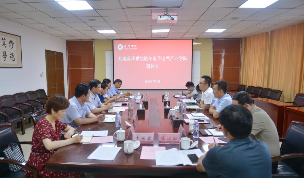 为深化校企合作、产教融合,加快推进现代产业学院建设,促进高端技术复合型人才培养,7月7日下午,歌尔股份有限公司员工管理总监兼歌尔工学院院长李高峰一行来到我校,就深入推进产业学院合作开展洽谈。校党委书记衣玉琛在综合办公楼九楼接待室会见来访客人,党委副书记、院长姜同松,党委委员、副院长胡尊东与来访客人在综合办公楼十楼会议室举行研讨会。