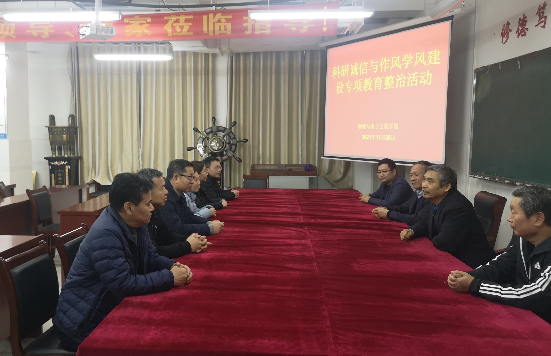 根据上级文件精神和学校工作安排,11月26日下午,best365手机版官方网站组织开展科研诚信与作风学风建设专项教育整治活动,并进行了自查自纠活动。
