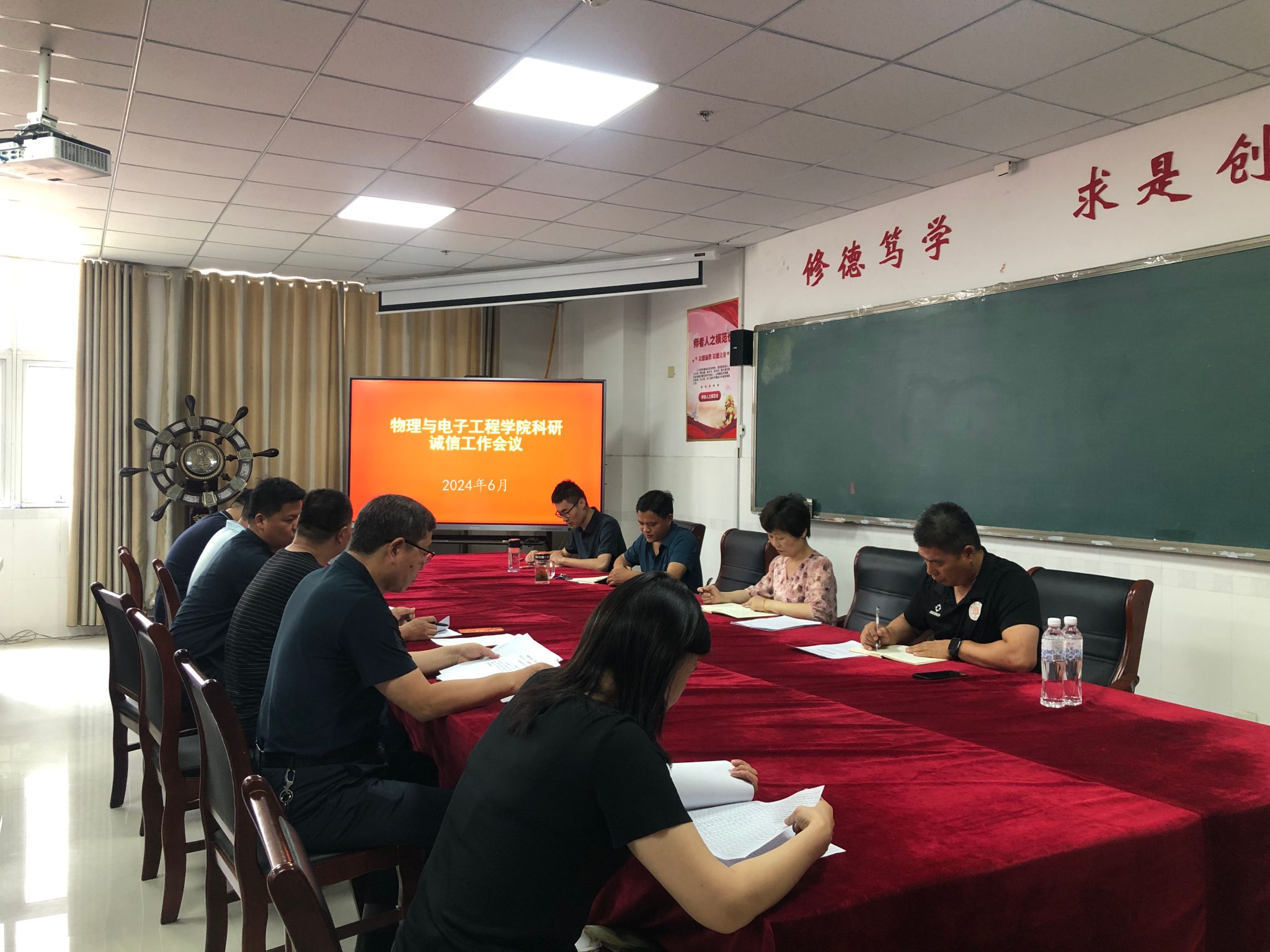 根据上级文件精神和学校工作安排,6月6日下午,best365手机版官方网站组织开展科研诚信与作风学风建设专项教育整治活动,并进行了自查自纠活动。物理与电子工程学党委书记徐鹤、副书记祝清森、副院长张运海、张传彪等领导同志,以及科研学科带头人参加了此次活动,分别就科研诚信与作风学风建设开展了理解认识及自查自纠讲话,并形成一致意见:要进一步加强科研诚信建设,建立健全科研项目信息内部公开制度,完善信用机制,强化绩效评价;要以习近平新时代中国特色社会主义思想为指导切实加强作风和学风建设,积极营造良好科研生态和舆论氛围,引导best365官网科技工作者紧密团结在以习近平同志为核心的党中央周围,增强“四个意识”、坚定“四个自信”、做到“两个维护”,践行社会主义核心价值观,争做科研成果的创造者、建设科技强国的奉献者、崇高思想品格的践行者、良好社会风尚的引领者,为实现“两个一百年”奋斗目标、实现中华民族伟大复兴的中国梦作出更大贡献。