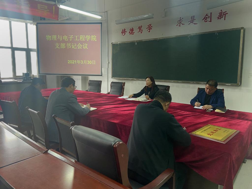 为督促各基层党组织认真落实全面从严治党主体责任,切实增强“四个意识”、坚定“四个自信”、做到“两个维护”,推动best365手机版官方网站全面从严治党向纵深发展,根据校党委要求,3月30日,best365手机版官方网站召开党支部书记工作会议。党委书记刘燕、副书记杨宏宇、教工党支部和学生党支部书记参加了本次会议。