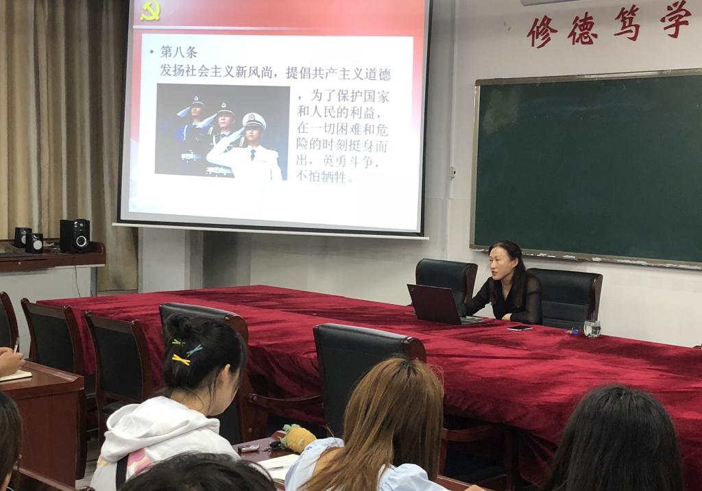 7月1日下午,best365官网在综合实验楼W207会议室开展了“我来讲党课”活动,党委书记刘燕同志以“党员的权利和义务”为题讲了一堂党课,学生第一党支部全体党员和部分入党积极分子参加了此次党课学习。