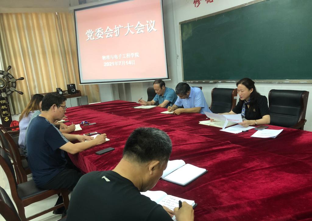 7月14日,best365手机版官方网站在综合实验楼W207会议室召开党委扩大会议,研究部署党史学习教育专题组织生活会工作,学院领导班子成员及各党支部书记参加了此次会议。