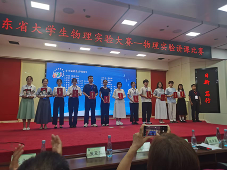 2025年7月19日-21日,山东省第十七届大学生科技节山东省大学生物理实验大赛-物理实验讲课比赛在鲁东大学举行。来自山东大学、聊城大学、曲阜师范大学等全省35所高校共220支队伍参加比赛。best365官网物理实验团队在大赛中斩获佳绩,共获奖项8项,其中一等奖2项,二等奖3项,三等奖3项。