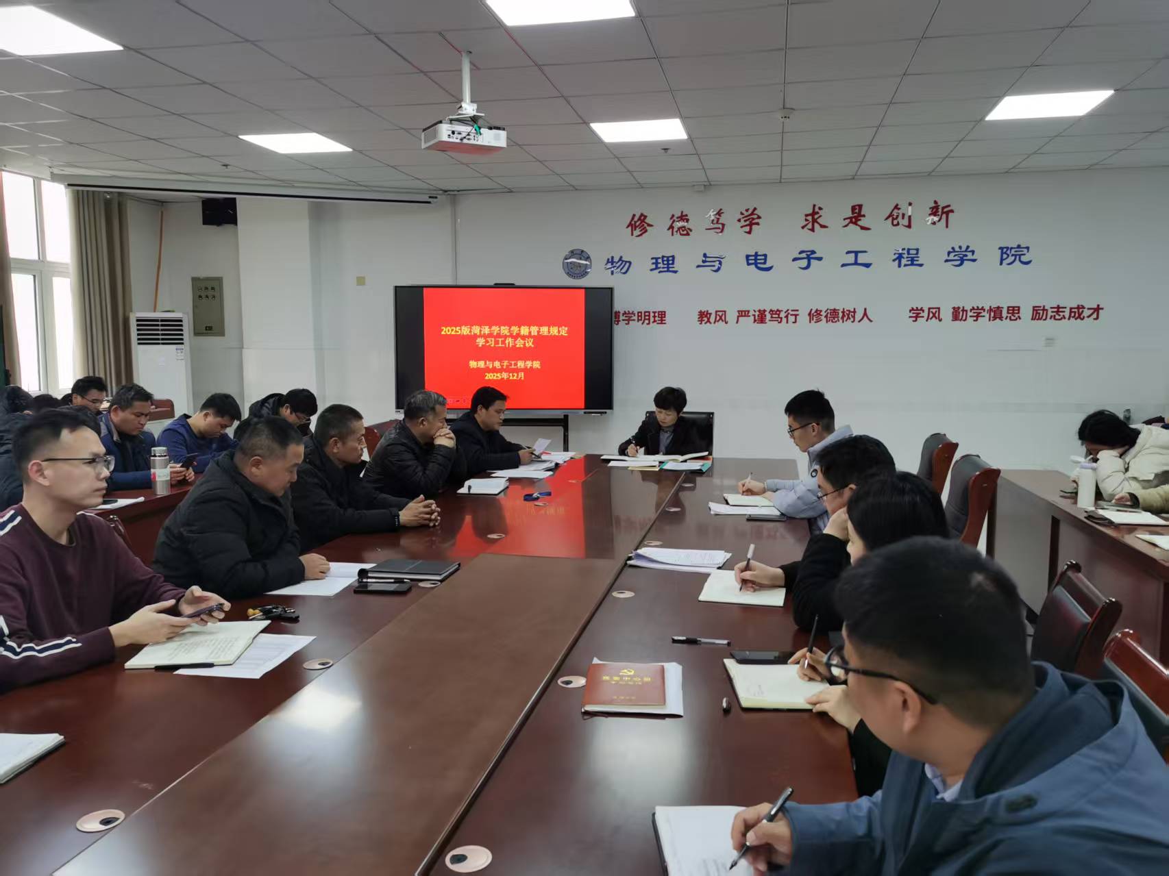 为深入理解并准确执行学校教育教学管理新规,保障学生权益,规范管理流程,12月11日,best365手机版官方网站组织召开专题工作会议,集中学习《best365手机版官方网站普通全日制学生学籍管理规定(修订)》。学院领导班子成员、各系主任、全体辅导员及教学管理人员参加会议。