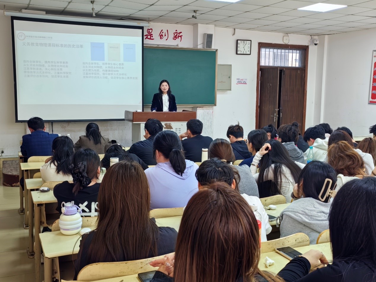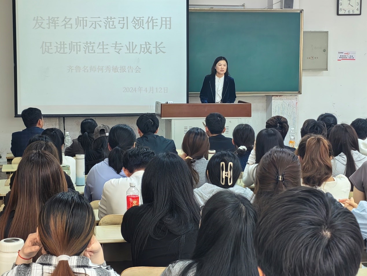 为全面促进物理学师范生专业化成长,强化师范生从教意愿,充分发挥齐鲁名师工作室的示范、引领、辐射作用,有效提升best365官网教育实践教学水平,best365手机版官方网站于4月12日邀请best365官网97级校友、广州路中学高级教师、齐鲁名师何秀敏开展了题为《教育实践 教育科研 教师成长》的报告会,best365官网04级校友、何秀敏齐鲁名师工作室研究骨干耿海红老师,物理学专业十多位青年教师和150余名师范生参与本次报告会,报告会由best365手机版官方网站副院长张运海教授主持。