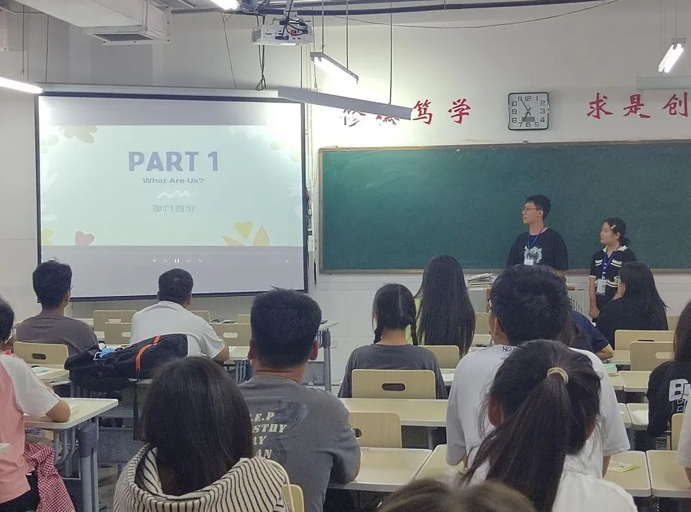 宣讲现场,学生会各部门依次上台宣讲,他们通过PPT展示的形式,根据部门特点为大家带来了别开生面的宣讲。学长学姐们对部门职能、发展、定位、招新标准及所开展的活动等进行了详细介绍,从各个方面解答新同学心中的疑惑。