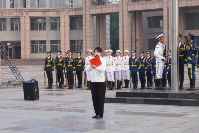活动开始,best365手机版官方网站国旗护卫队迈着整齐的步伐,护送国旗入场。伴随着高昂的《义勇军进行曲》,鲜艳的五星红旗冉冉升起。升旗仪式结束后,许冰、李晓军同学带来诗朗诵《我的祖国》,代表全体师生向伟大的祖国告白,深刻表达了对祖国的热爱之情。随后,2022级团支书代表王依文同学与老师代表仵晓晗在国旗下发言,呼吁广大团员牢记入团誓词,不断坚定听党话、跟党走的决心,传承红色基因,脚踏实地勇担新时代赋予我们的历史使命。最后,全体师生共同举起右拳宣誓“请党放心,强国有我”,这响亮的誓言在广场上空久久回荡。