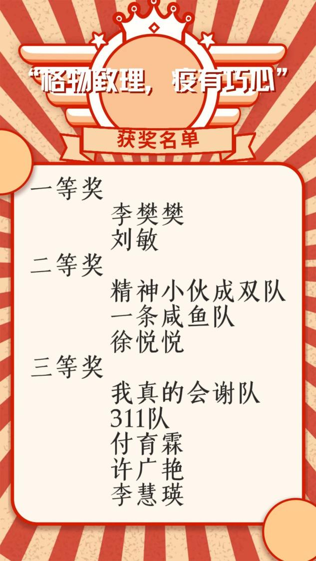 此次活动为同学们提供了良好的创意展示空间,提高了团队协作意识,进一步缓解了疫情期间学生的消极情绪,为校园疫情生活增添了一抹色彩。