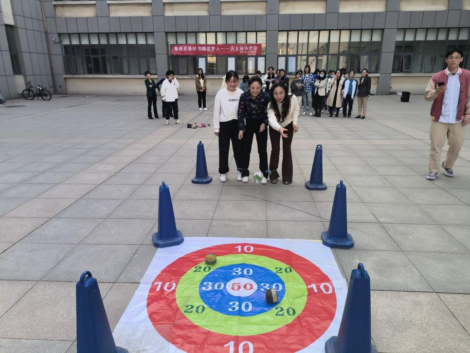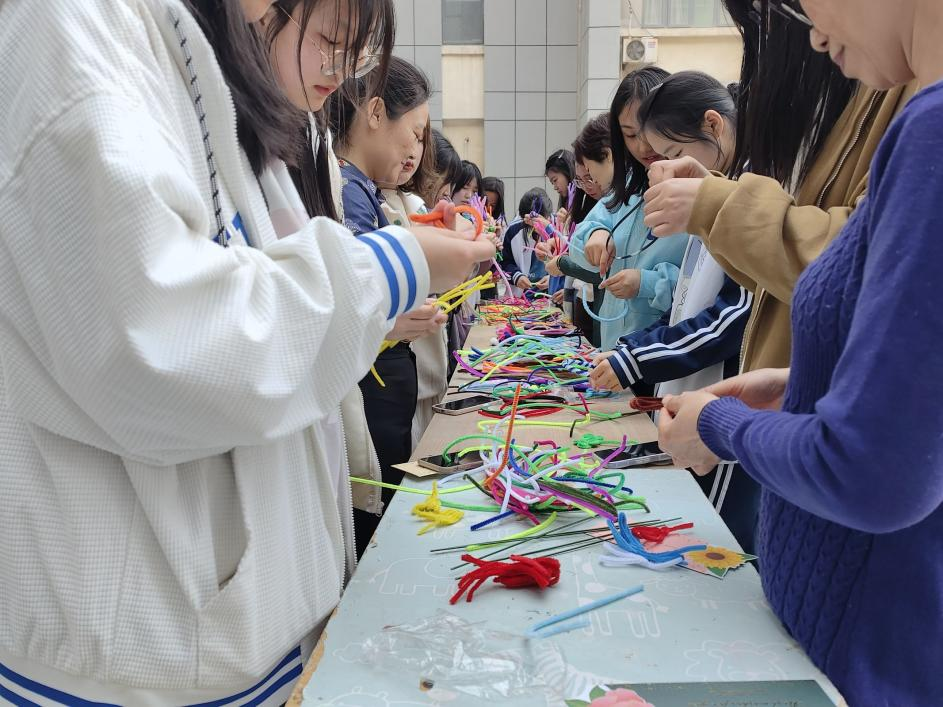 此次活动主要包括你画我猜、多人沙包投掷、“母鸡下蛋”、祝福贺卡赠送和DIY扭扭棒制作等五个环节。活动现场一片欢声笑语,热闹非凡。老师们和学生们协作互助共同完成游戏任务,场上相互鼓励,场下相互交流,配合默契。老师、同学们的笑声、喝彩声此起彼伏,既锻炼了女教师及学生的动手能力和团队合作能力,又放松了身心,缓解了工作和学习压力。