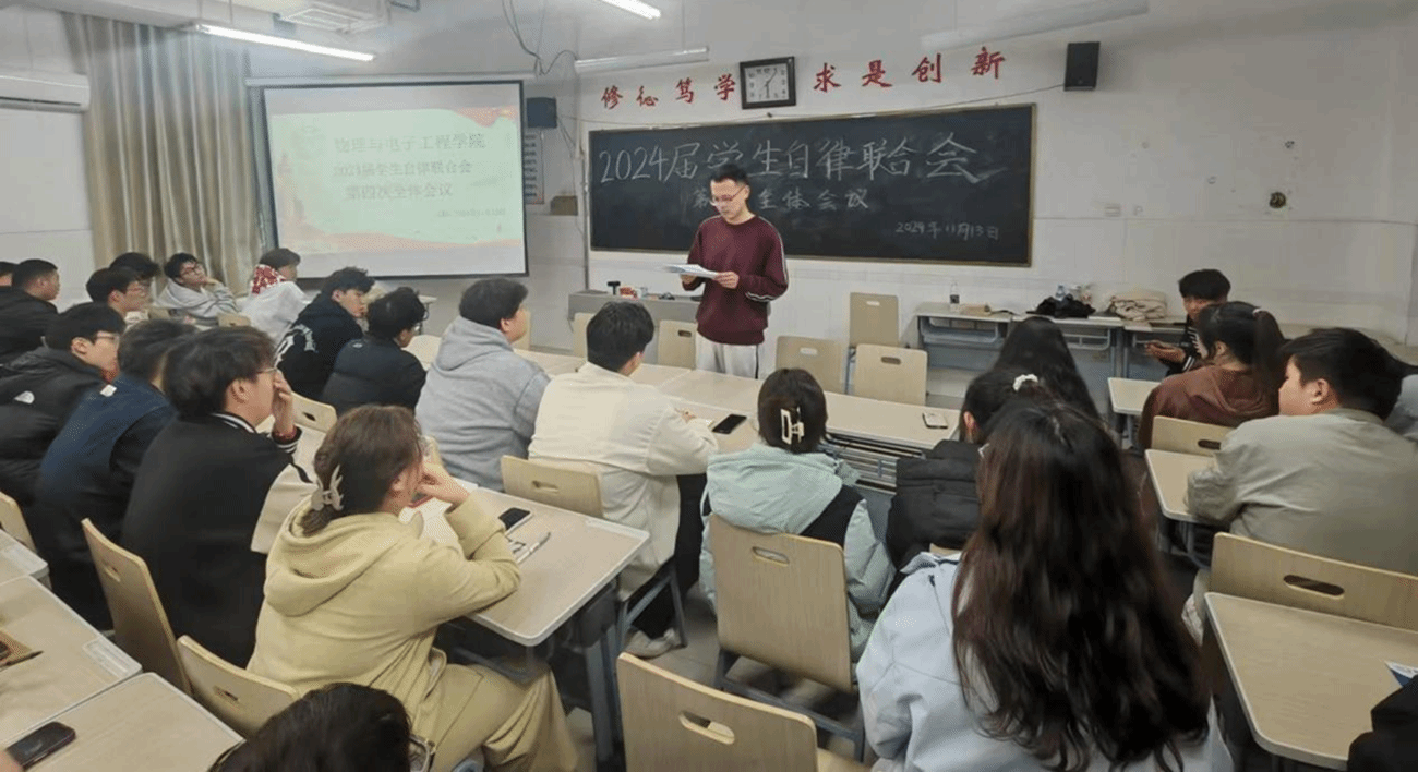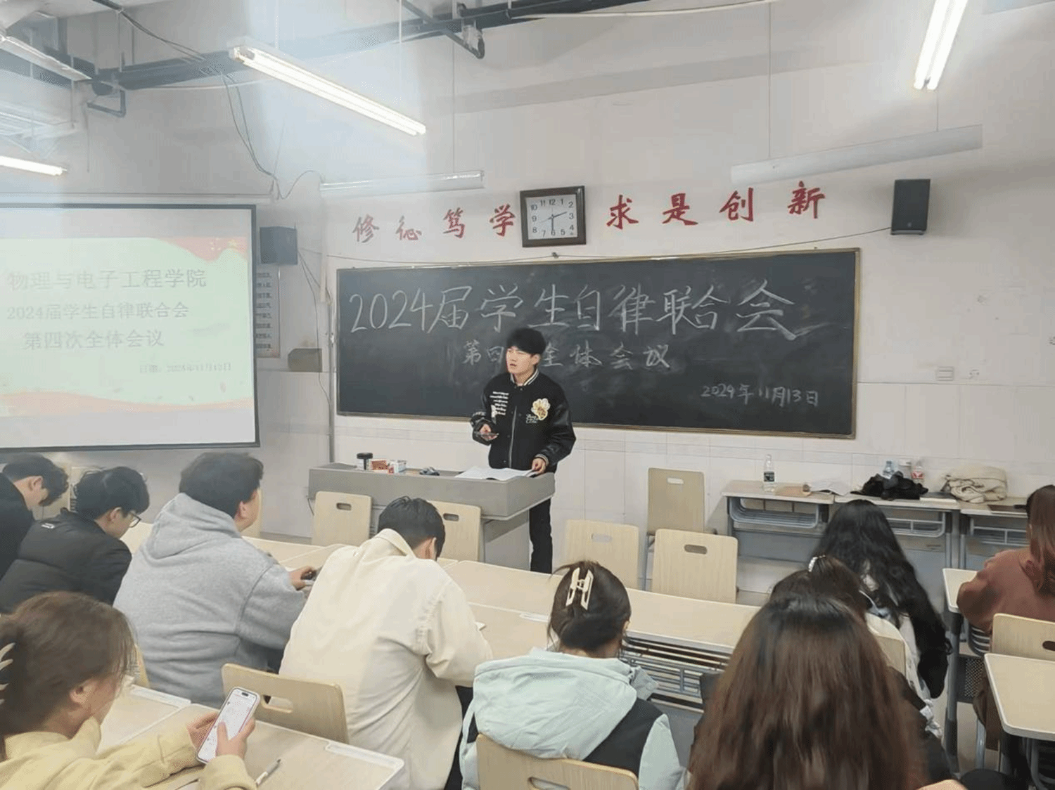 为给同学们提供良好的学习氛围和安全的生活环境,11月13日,best365手机版官方网站在综合实验楼W502教室召开2024届学生自律联合会第四次全体会议。辅导员李晨出席此次会议。学生自律联合会主席戴竣彦主持会议。2024届自律联合会全体成员参加。