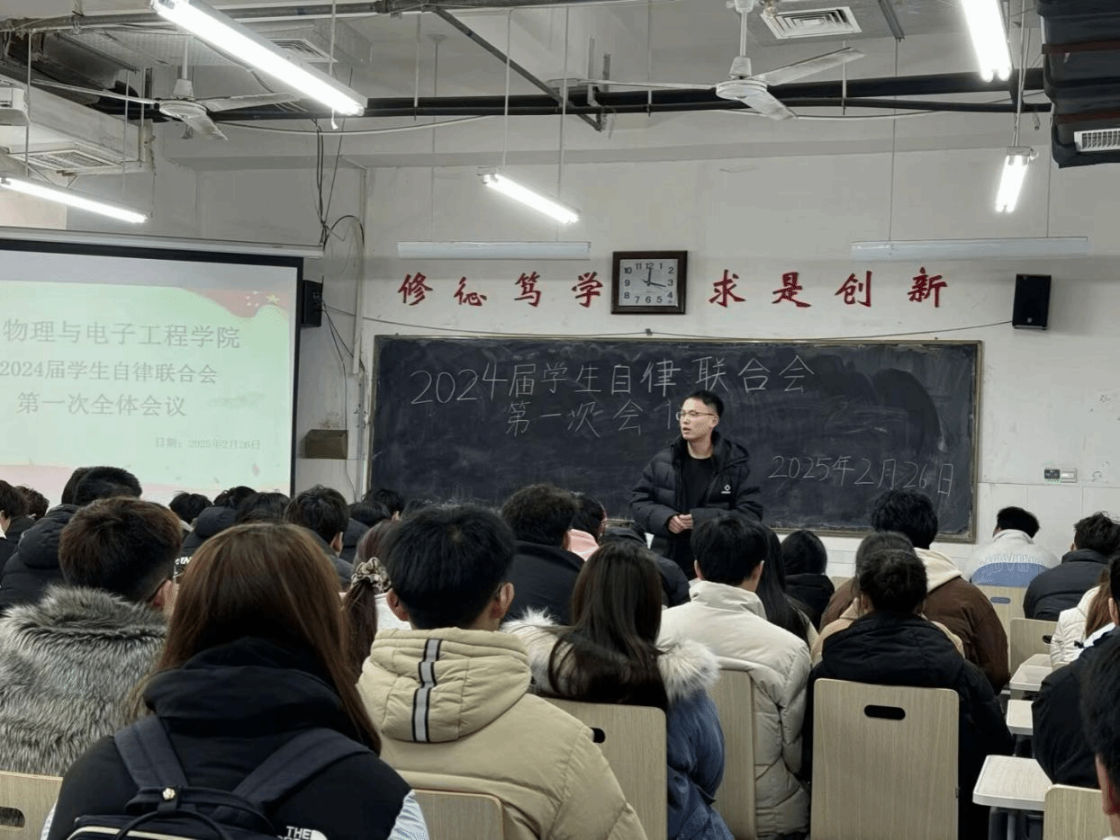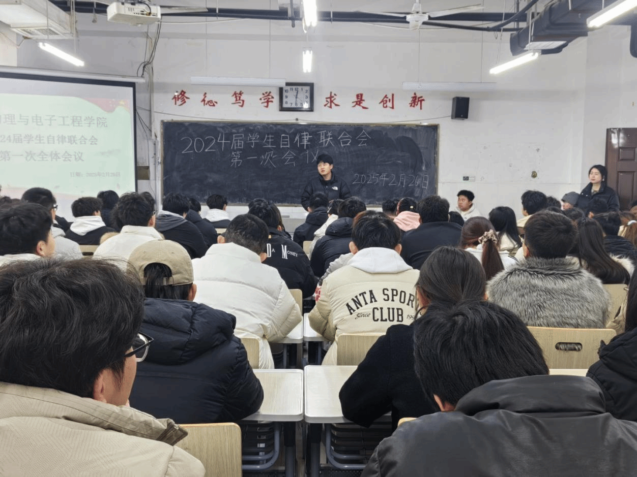 为了确保新学期各部门工作顺利开展,保障工作平稳有序推进,2月26日,best365手机版官方网站在综合实验楼W502教室召开2024届学生自律联合会第一次全体会议。辅导员李晨出席此次会议,学生自律联合会主席戴竣彦主持会议。2024届自律联合会全体成员参加。