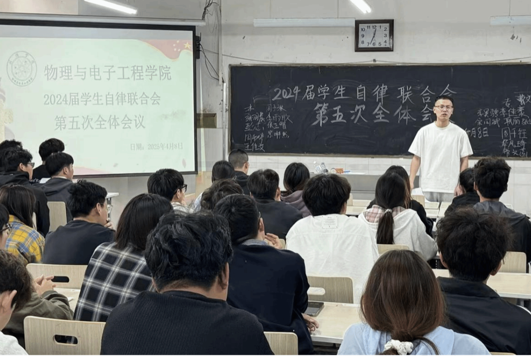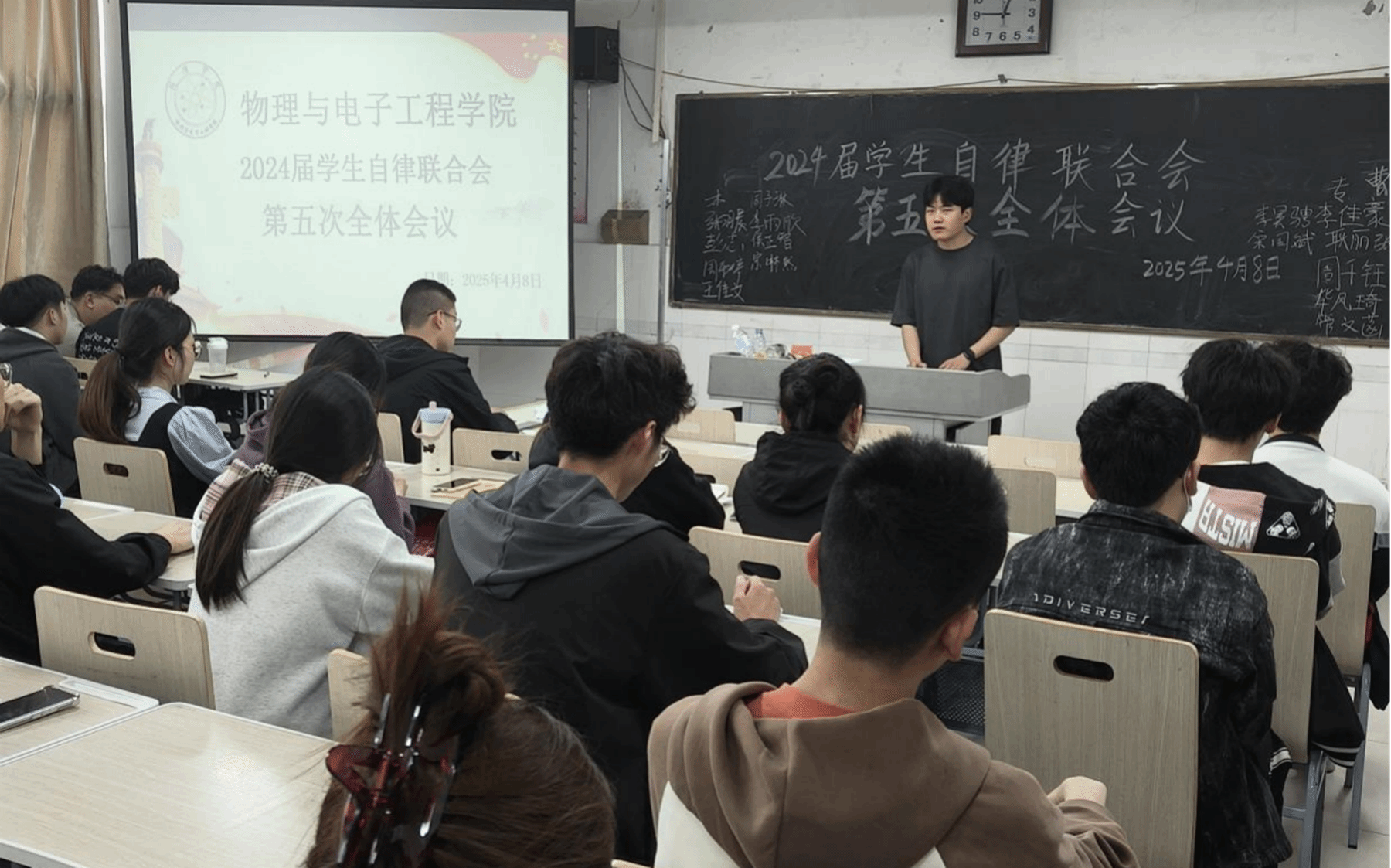 为增强成员综合能力,夯实组织发展根基,4月8日,best365手机版官方网站在综合实验楼W502教室召开2024届学生自律联合会第五次全体会议。会议由学院学生自律联合会主席戴竣彦主持,辅导员李晨出席会议,全体学生会成员参加。