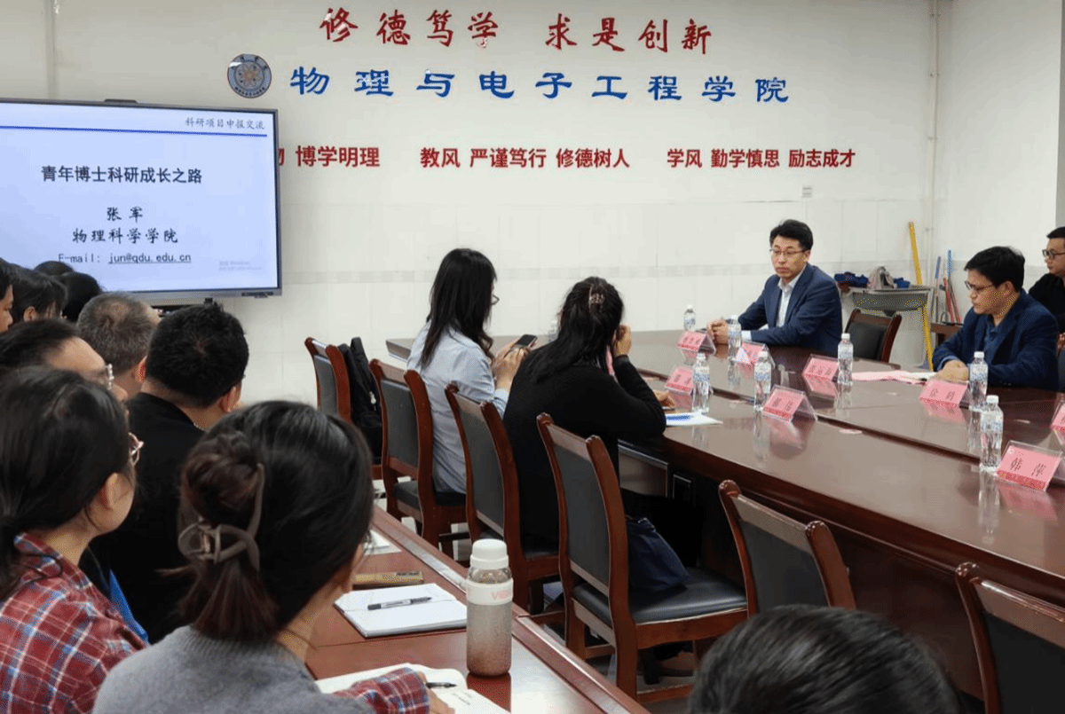 交流会在友好融洽的氛围中展开。首先,青岛大学物理科学学院副院长、泰山学者、博士生导师张军教授向全院教职工作《青年博士科研成长之路》的专题汇报。张军教授详细介绍了国家社科基金项目的申报政策及评审流程,从研究课题的选题依据、研究内容、创新之处、研究对象、研究基础等方面对国家社科基金项目申报书以及活页的撰写方法和注意事项进行了详尽阐述和指导。在互动环节,针对大家关心的如何选题、如何撰写研究方案、如何提升申请书质量等问题,张军教授给出了具体建议和实践经验。他鼓励大家勇于尝试、不断创新,同时要注重团队合作和学术交流,共同提升科研水平。