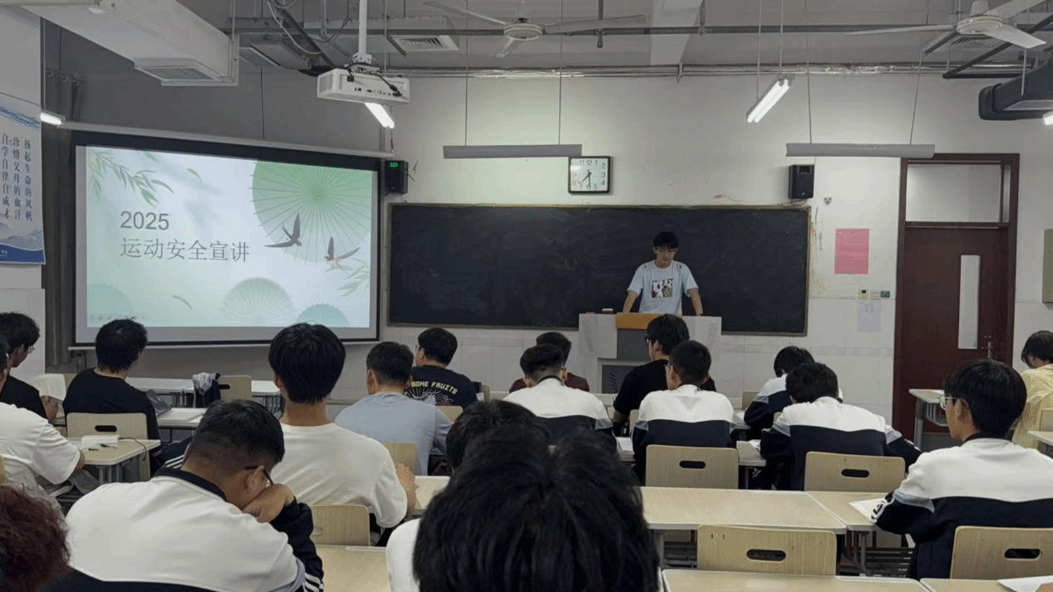 宣讲活动通过理论讲解、案例分析与互动实践相结合的方式,全面普及科学运动理念与风险防范知识。各班宣讲人以“生命因运动而精彩”为切入点,结合真实案例强调科学运动对塑造健康体魄和积极心态的双重价值,指出运动安全是享受运动的前提条件,倡导学生运动要循序渐进、量力而行,避免“突击式健身”“超负荷训练”等误区,警示学生关注身体信号,在出现头晕、疼痛等异常状况时及时中止运动。多元化的互动形式深化了学习效果,帮助学生们树立“安全无小事”的意识,引导他们在日常锻炼中注重细节,让运动真正成为可持续的健康生活方式。