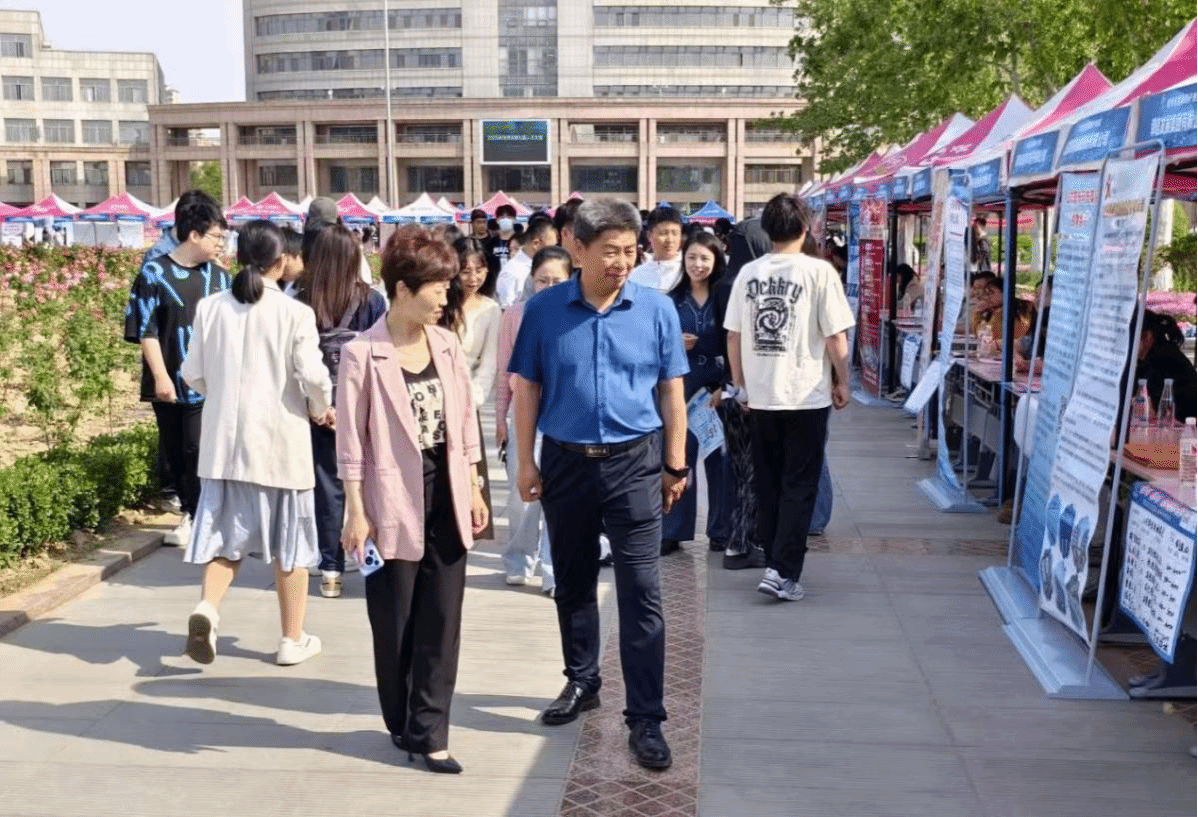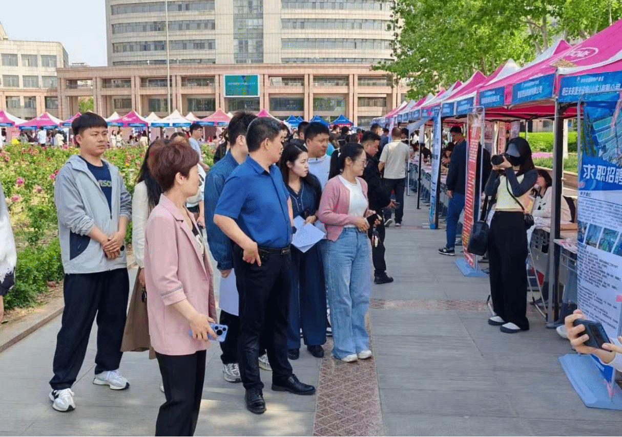4月27日上午,2025年菏泽市第七届“人才大集”暨best365手机版官方网站2025届毕业生春季校园招聘会在我校综合办公楼前广场举行。best365手机版官方网站党委书记徐鹤、党委副书记祝清森、全体辅导员、毕业班班主任带领best365官网学子参加本次招聘会。