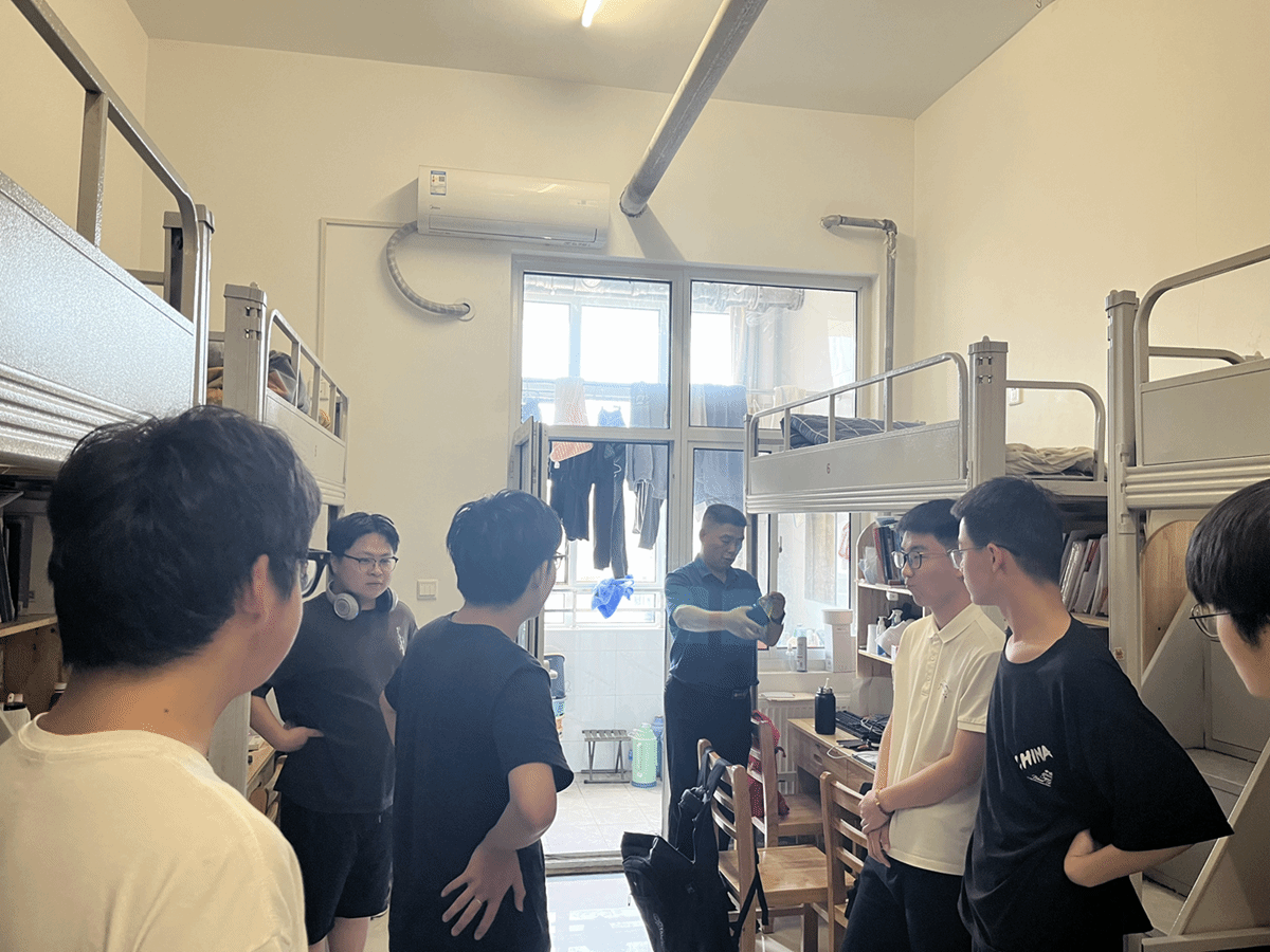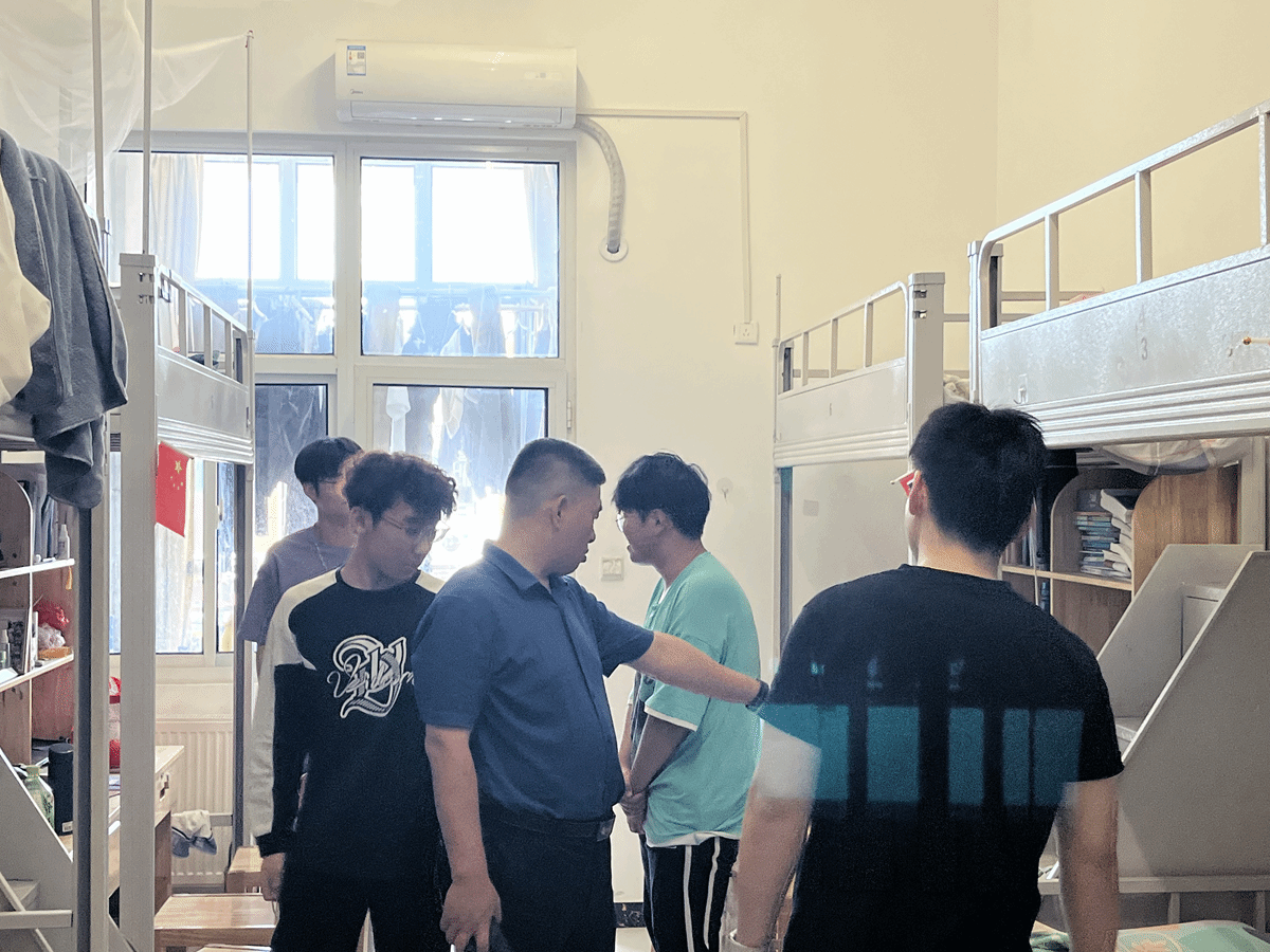走访过程中,老师们逐间检查寝室,重点排查用电安全、卫生状况及违禁物品存放情况,对插线板使用、禁用违规电器等细节进行强调。同时老师们还详细询问了同学们的假期行程安排和外出计划,了解学生的出行目的地、时间以及交通工具等信息,叮嘱学生外出期间务必提高警惕,注意防范电信诈骗、溺水、交通等安全隐患,并保持与家人和辅导员的联系,确保假期期间的安全。
