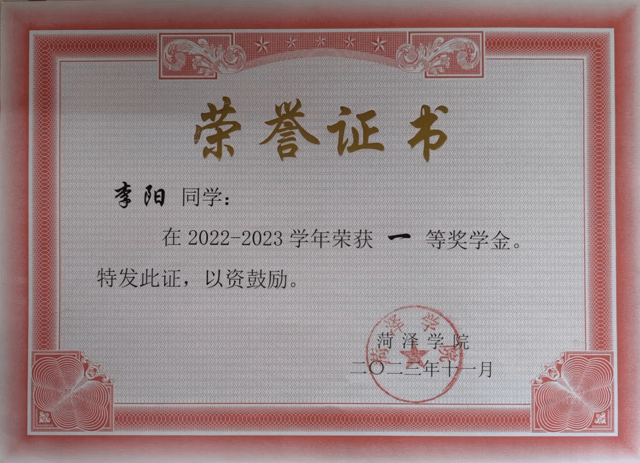 2022-2023学年,获得best365手机版官方网站一等奖学金。