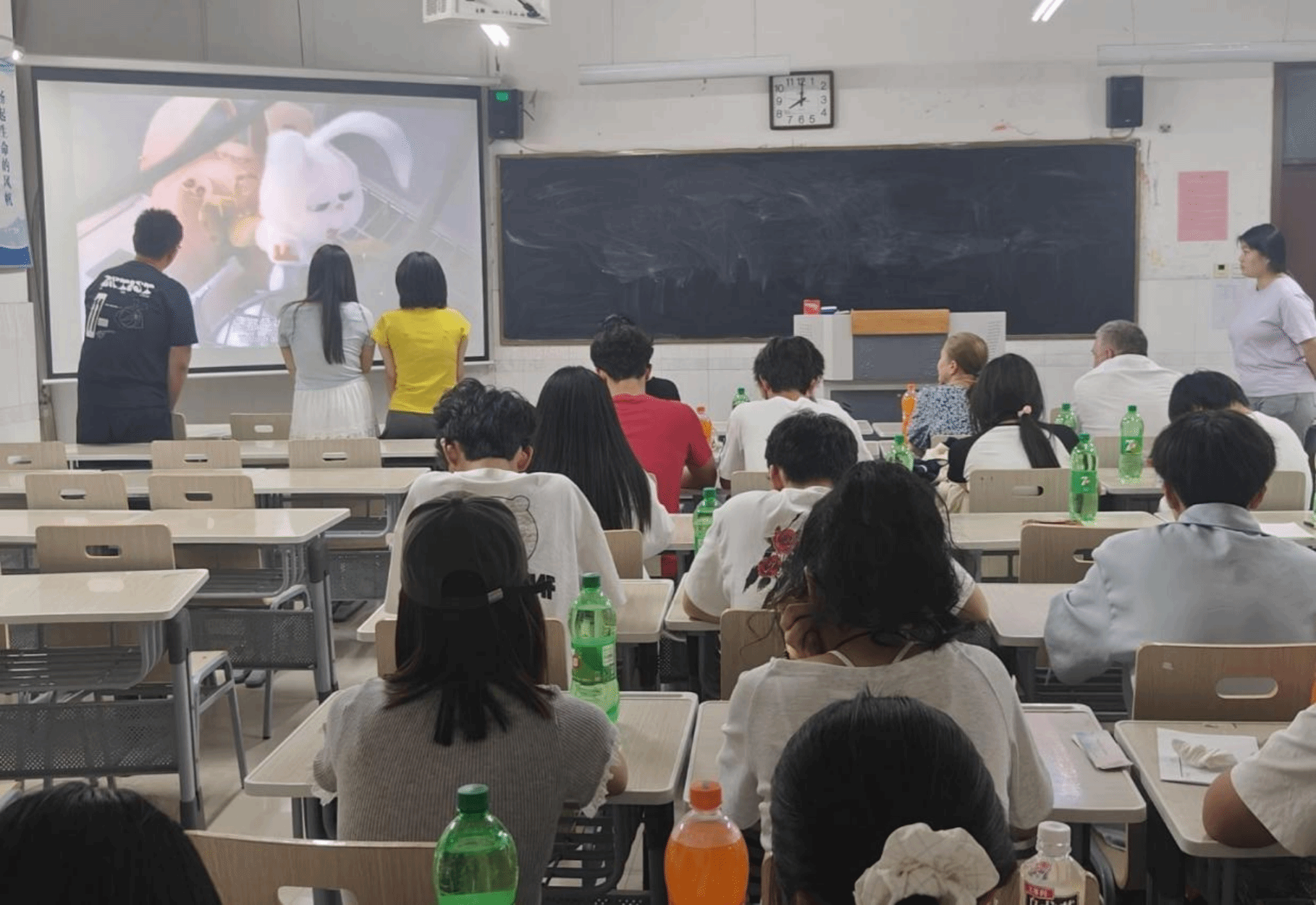 活动伊始,外教老师和同学们一起观看话剧电影。马文歆老师从不同视角展开讲解,帮助同学们更好的理解话剧。外教老师与同学们围绕话剧多个角度展开深入讨论,畅谈各自对话剧的独到见解,整个活动现场洋溢着浓厚的学术氛围与思想交流的热情。