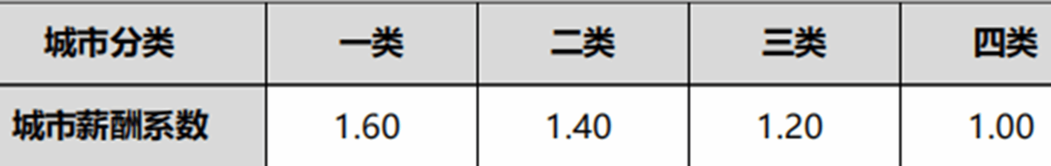 B.城市薪酬系数根据当地消费水平、市场薪酬水平、光伏市场竞争力以及艰苦边远地区等因素划分为四类城市,详见《中国电站城市分类表》,对应薪酬系数如下表: