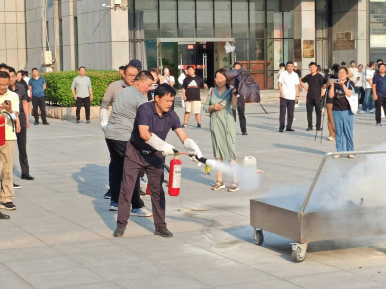 疏散演练结束后,消防专业人员向师生们介绍了灭火器的使用方法。他通过 “提、拔、握、压” 四字口诀,配合现场演示,认真科普灭火器的操作步骤。“提,是提起灭火器;拔,拔掉保险销;握,握住喷管最前端;压,压下压把对准火焰根部喷射。”消防员一边讲解一边示范,在专业指导下,不少师生也在消防专业人员的指导下,学习如何正确使用灭火器,切实掌握了灭火器的使用技巧。