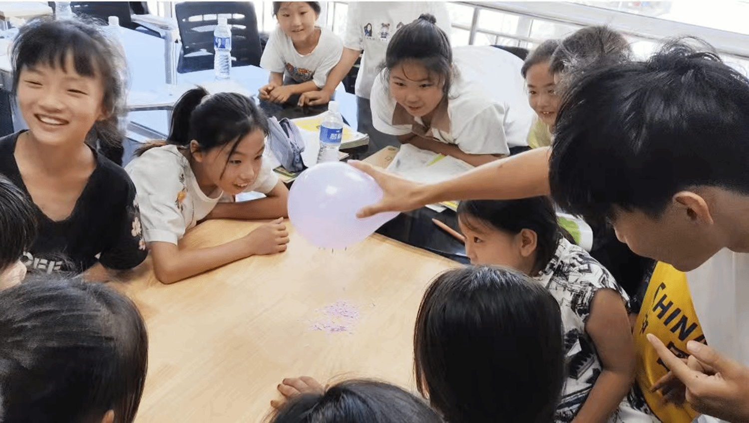 物理实验课上,气球吸纸屑的“魔法”、激光爆气球的震撼,点燃了探索欲。孩子们数着“吸起5片纸屑”,将刚学的数字化为观察的语言。志愿者笑着说:“想知其然,就得学好数理。”