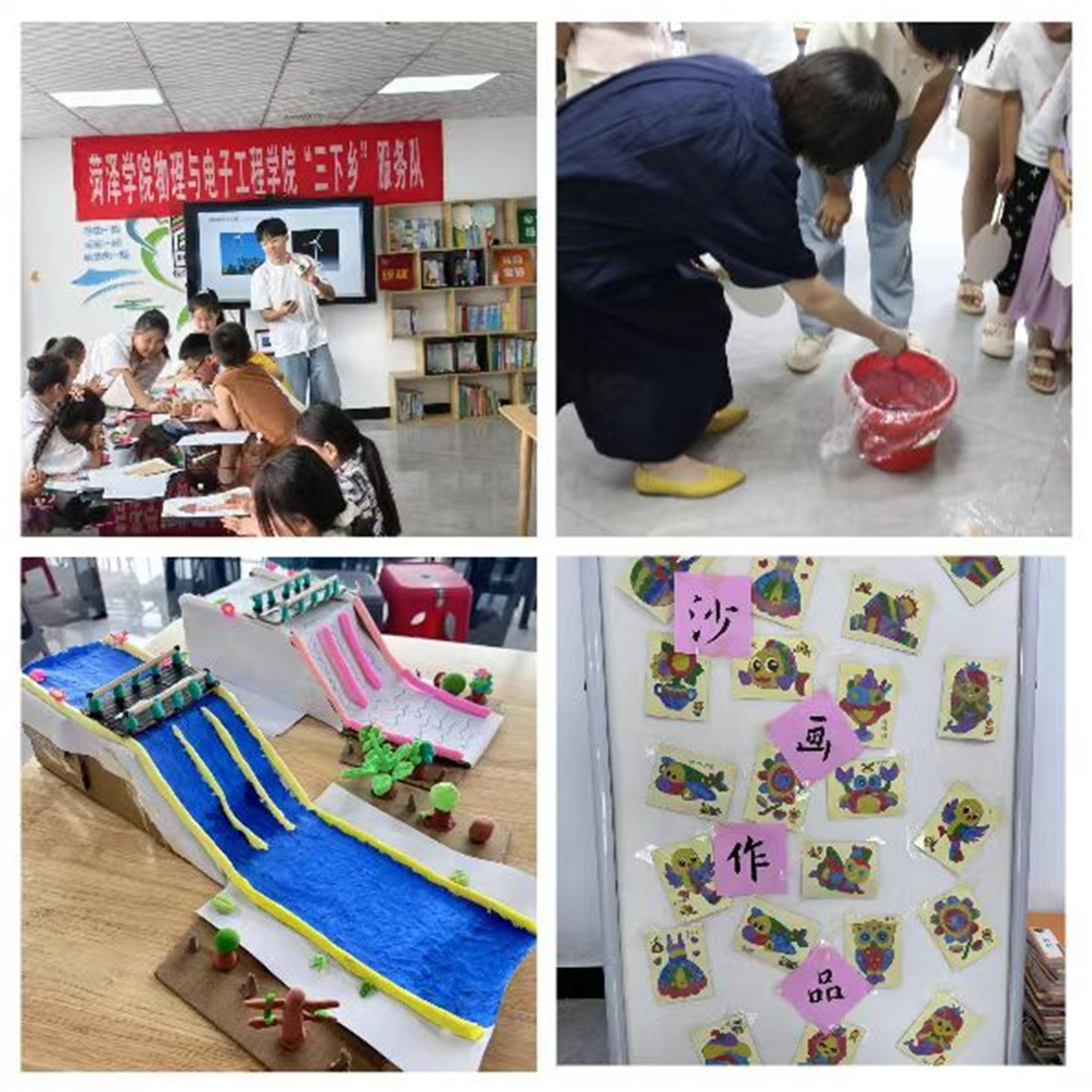 考察组深入“小荷学堂”课堂与宿舍走访,沉浸式感受实践育人的蓬勃生机:科技筑梦现场,志愿者带领孩童制作太阳能风车,当叶片在阳光下欢快旋转,孩子们的欢呼瞬间点燃课堂,科技梦想悄然生根;红色旋律激荡,学生唱响《祖国不会忘记》,后续《保卫黄河》等铿锵旋律将持续回荡,厚植浓浓家国情怀;红色薪火传递,大学生志愿者深情讲述菏泽本地革命英雄沈鸿林浴血奋战的故事,将烽火岁月娓娓道来。孩子们托腮倾听,眼神专注,随后的“小小故事会”上,大家踊跃分享感悟,讨论何为新时代的担当,理想信念的火种在交流碰撞中悄然点亮;非遗匠心传承,沙画再现三峡壮景,黏土塑出黄河生态画卷;更见非遗漆扇巧手绘,大学生志愿者悉心讲解传统漆艺,指导小学生体验漂漆成扇。当五彩颜料在水面绽开,扇面轻旋浸染,瞬息间留下流霞般的独特纹路。孩子们屏息凝视,跃跃欲试,纷纷动手制作心仪的漆扇,冰凉的扇骨握在掌心,斑斓的图案跃然眼前,古老技艺的奇妙与美感在指尖流淌;孩子们在沉浸式创作中感知文化底蕴与生态保护深意。