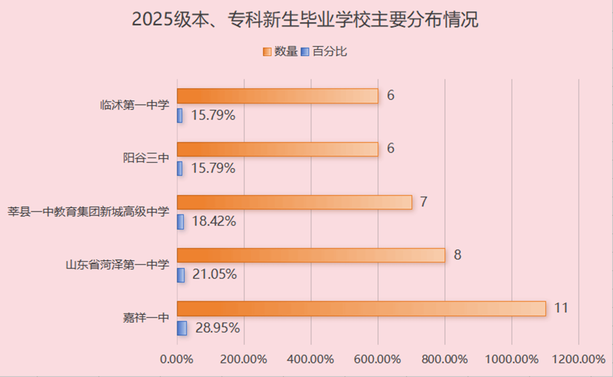 由图可知,2025级本、专科新生主要来自五所高中毕业生源校,分别为:嘉祥一中、山东省菏泽第一中学、莘县一中教育集团新城高级中学、阳谷三中以及临沭第一中学。这一生源分布表明,best365官网与山东省内若干中学建立了稳定的招生联系,呈现出明显的地域集中特征