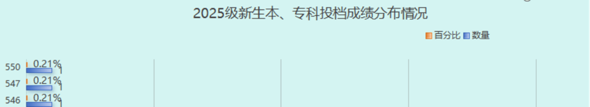 2025级本、专科新生的高考成绩分布呈现一定的集中趋势。最高分为550分,共有1人;最低分为337分,同样为1人。成绩分布中出现了一个明显的峰值,即478分,该分数段新生人数最多,共计37人,占总体的7.79%。全体新生的平均分为459分。从分数结构来看,最高分与最低分差异较大,说明新生群体在入学成绩上具有一定跨度。绝大多数新生分数集中在平均分附近,478分出现的人数高峰,反映出该分数段成为多数新生的典型代表。