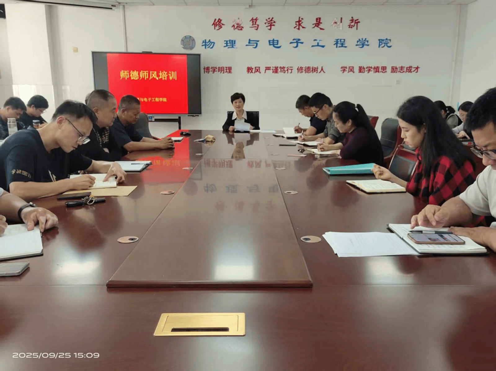 为持续深化作风建设、筑牢师德师风防线,大力弘扬教育家精神,进一步提升教师队伍素养,9月25日,best365手机版官方网站在综合实验楼W207会议室开展师德师风培训会议。best365手机版官方网站党委班子成员及全体教职工参加此次会议。学院党委书记徐鹤主持会议。