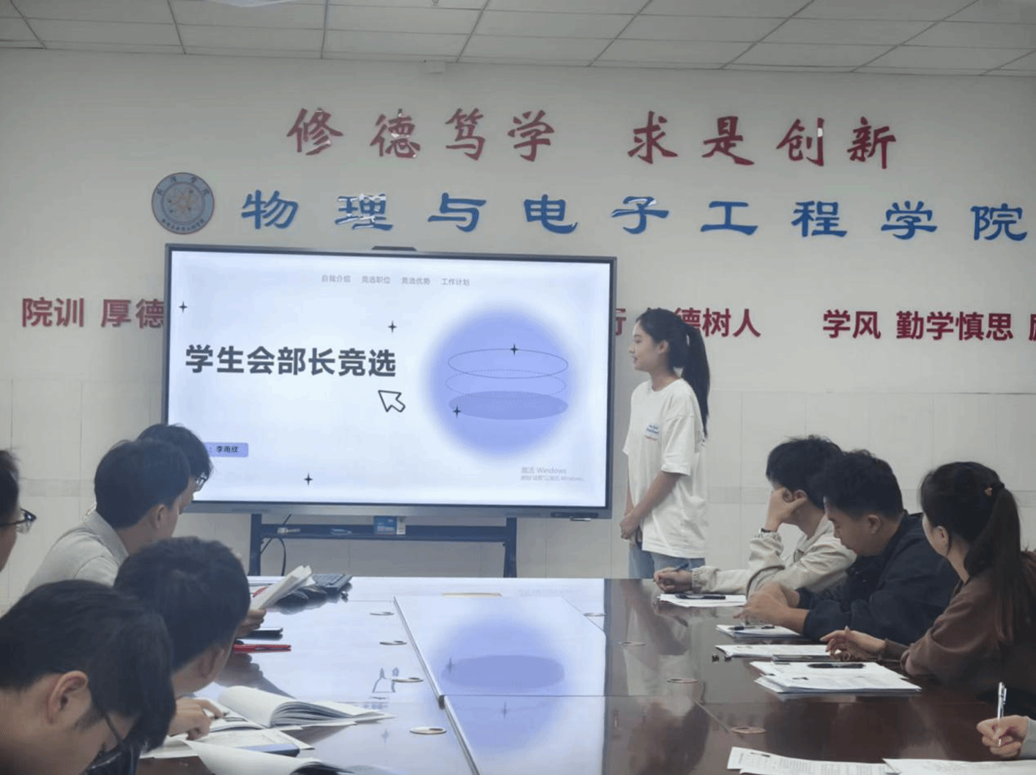 会议伊始,戴竣彦宣读竞选规则,强调公平、公开、公正原则,希望学生干部能够团结协作,充分发挥各自的才能,始终保持服务精神,勇于创新勇于担当责任。在竞选过程中,竞选者依次上台进行竞选演讲,从学习经历、竞选目的、职位认知和自身优势以及未来工作规划等方面进行介绍,展现出对自律会各部门工作的深刻理解和独到见解,充分表现了他们积极进取、服务同学的热情和决心。