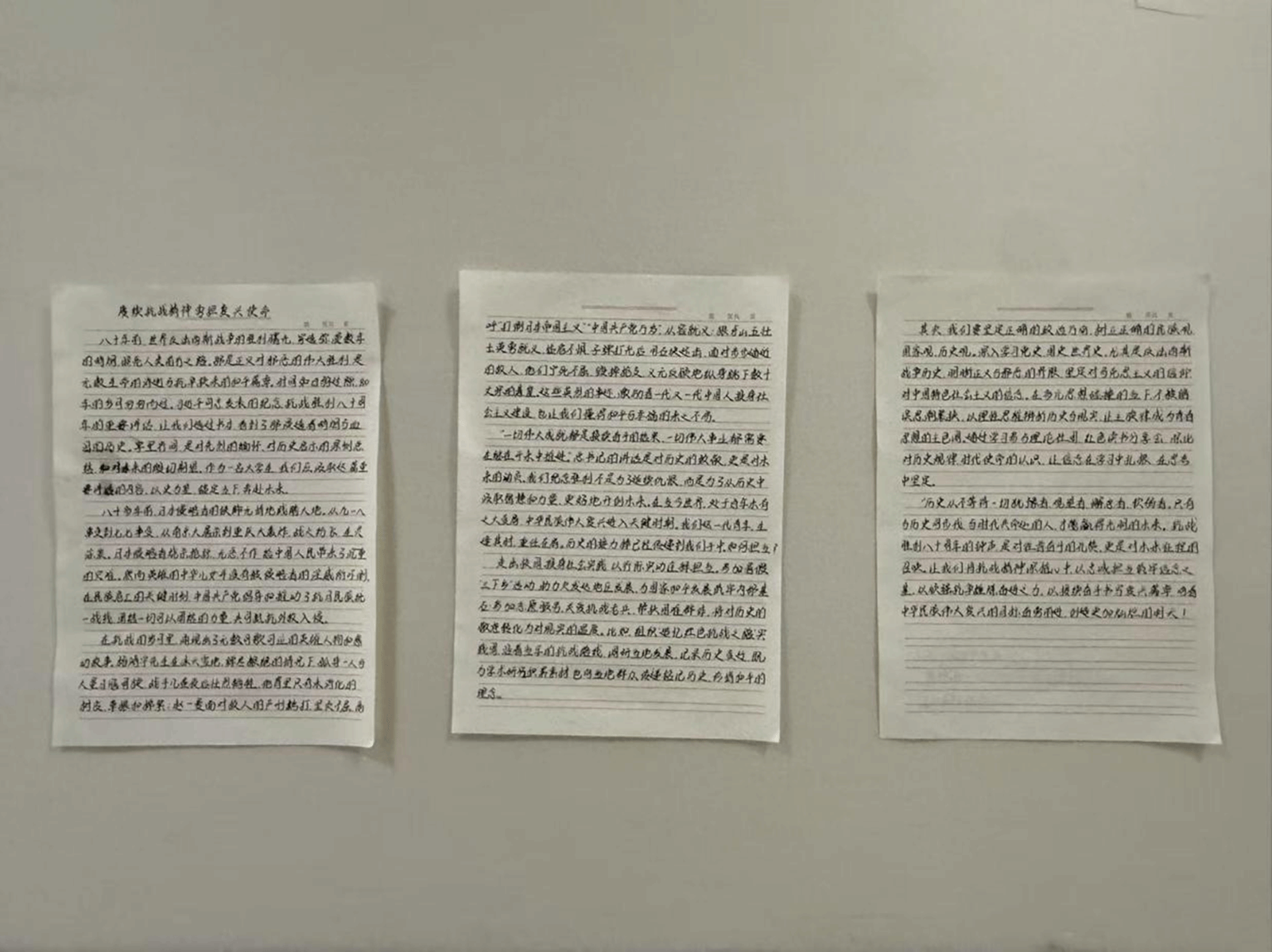 在各班负责人的积极动员下,同学们踊跃报名参与活动。大家深入学习领会习近平总书记重要讲话精神,紧密联系个人的学习成长与日常生活实际,以手写的方式,真挚记录下自己的思考与感悟,所提交的作品形式多样、内容生动,字迹娟秀工整,卷面整洁。在一笔一画的书写之间,不仅体现出同学们认真的态度,更传递出青年一代对历史的深切铭记与对未来的无限憧憬。此次活动,充分展现了同学们积极向上、奋发有为的精神风貌,也彰显出高度的集体意识与参与热情。
