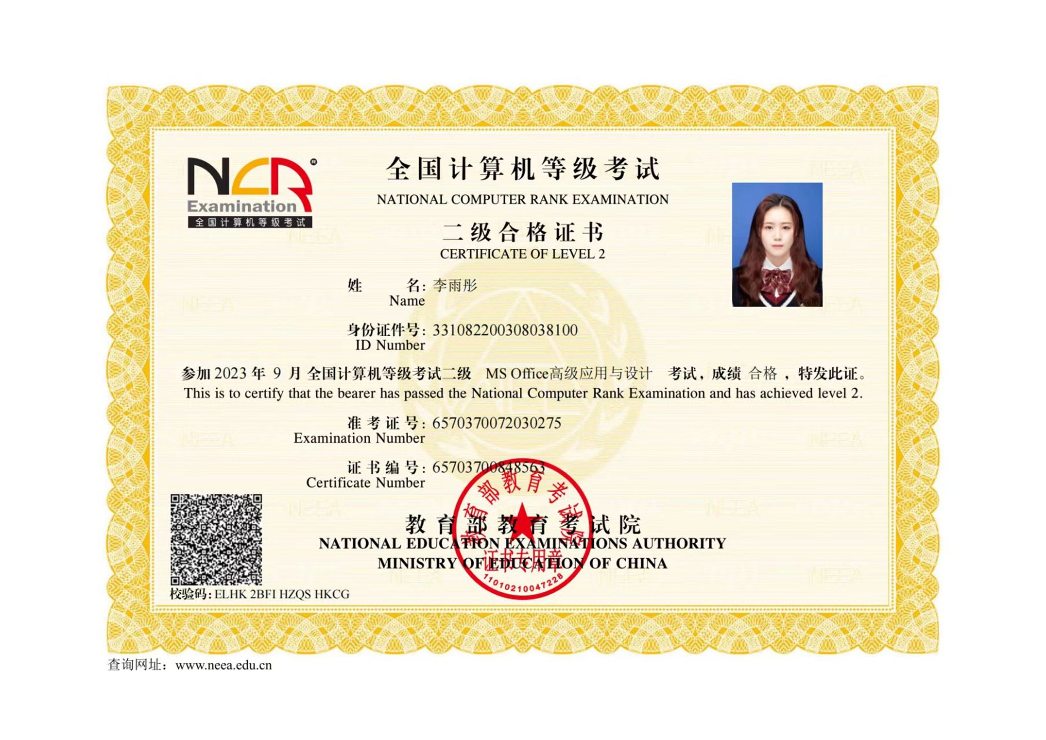 李雨彤同学始终保持着高度的政治觉悟和思想自觉。她积极向党、团组织靠拢,在大一入学就向团组织递交了入团申请书并于大二上学期成为一名共青团员,之后向党组织递交入党申请书,不断提高自身的思想水平,经过党组织的考察后顺利成为一名入党积极分子。凭借突出的思想表现,她先后荣获"优秀共青团员""优秀共青团干部""优秀学生""优秀学生干部"等多项荣誉称号,2023年11月参加best365手机版官方网站第九期“青年马克思主义者培养工程”先锋班并于2024年10月荣获"优秀学员"称号顺利结业。
