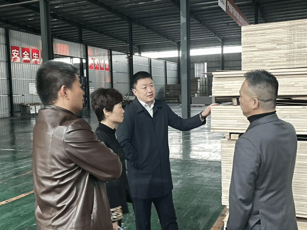 在庄寨镇党委副书记、镇长李振华陪同下,闫伟一行参观了山东隆饰木业有限公司和山东美饰佳装饰材料有限公司,全面了解园区产业发展情况。