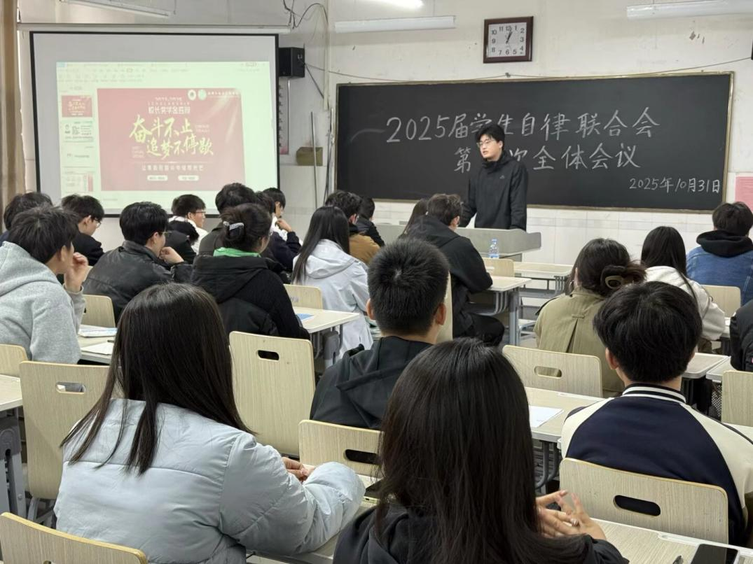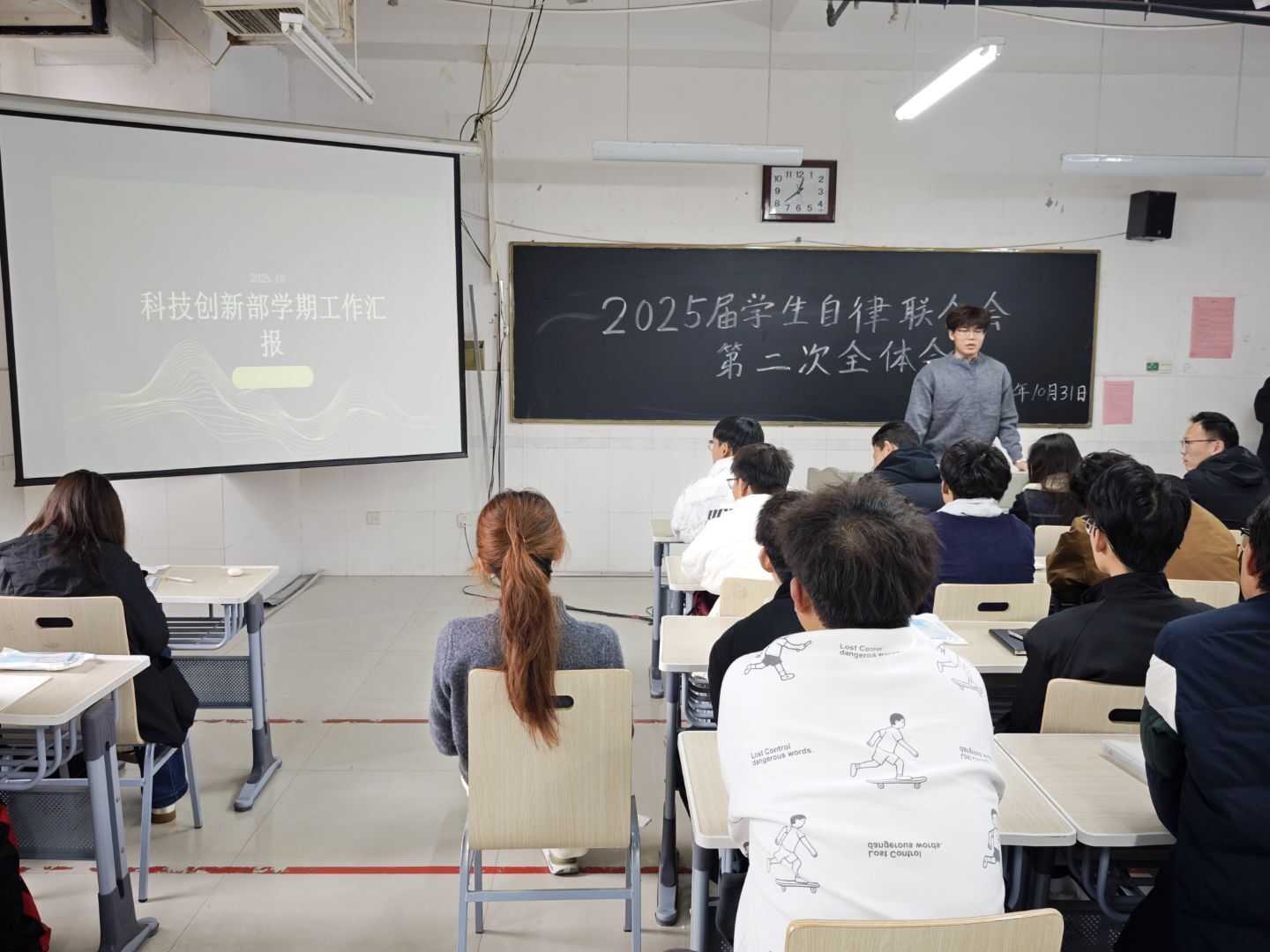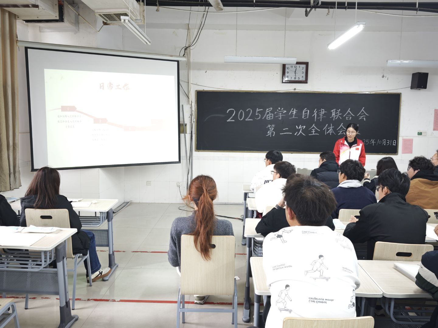 为总结近期工作、提升服务质量,10月31日,best365手机版官方网站在综合实验楼W502教室召开2025届学生自律联合会第二次全体会议。辅导员李晨出席此次会议,2025届学生自律联合会主席刘招锦主持会议,学生会全体成员参会。